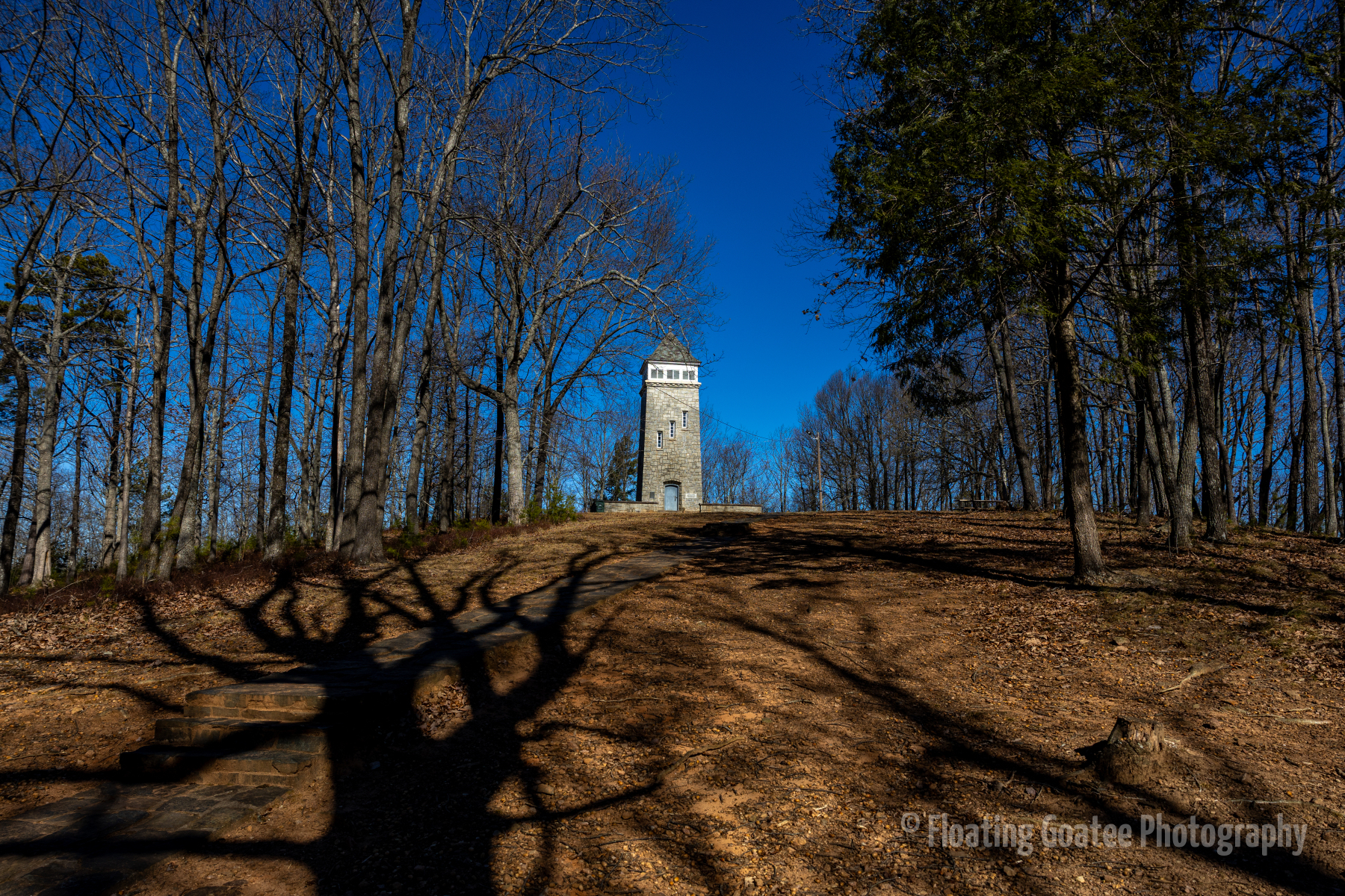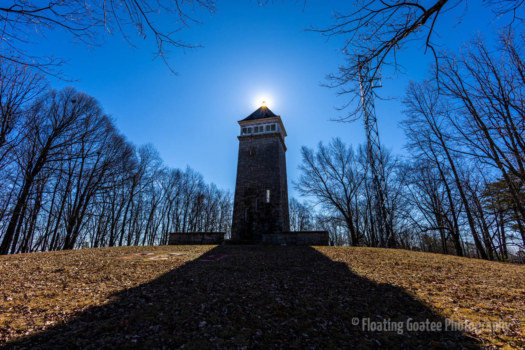 A cold January morning. A drive up into North Georgia to observe the Chenocetah Lookout Tower, a historical fire watch tower nestled in the mountains of Cornelia. A strong structure with a presence. The sun peaking at the top of the tower, casting shadows and creating flares. Truly a unique experience.