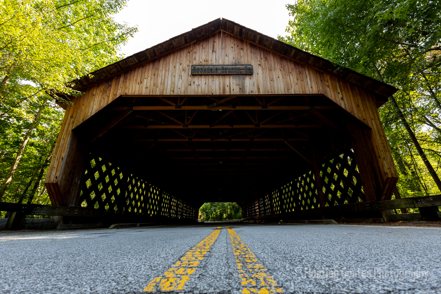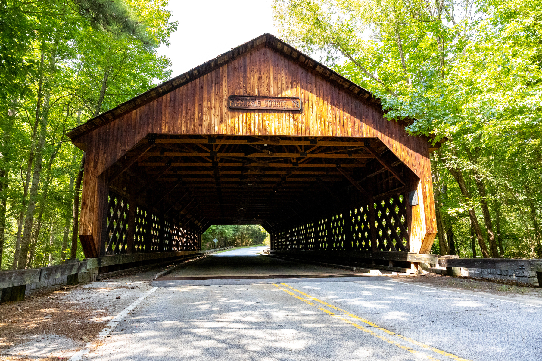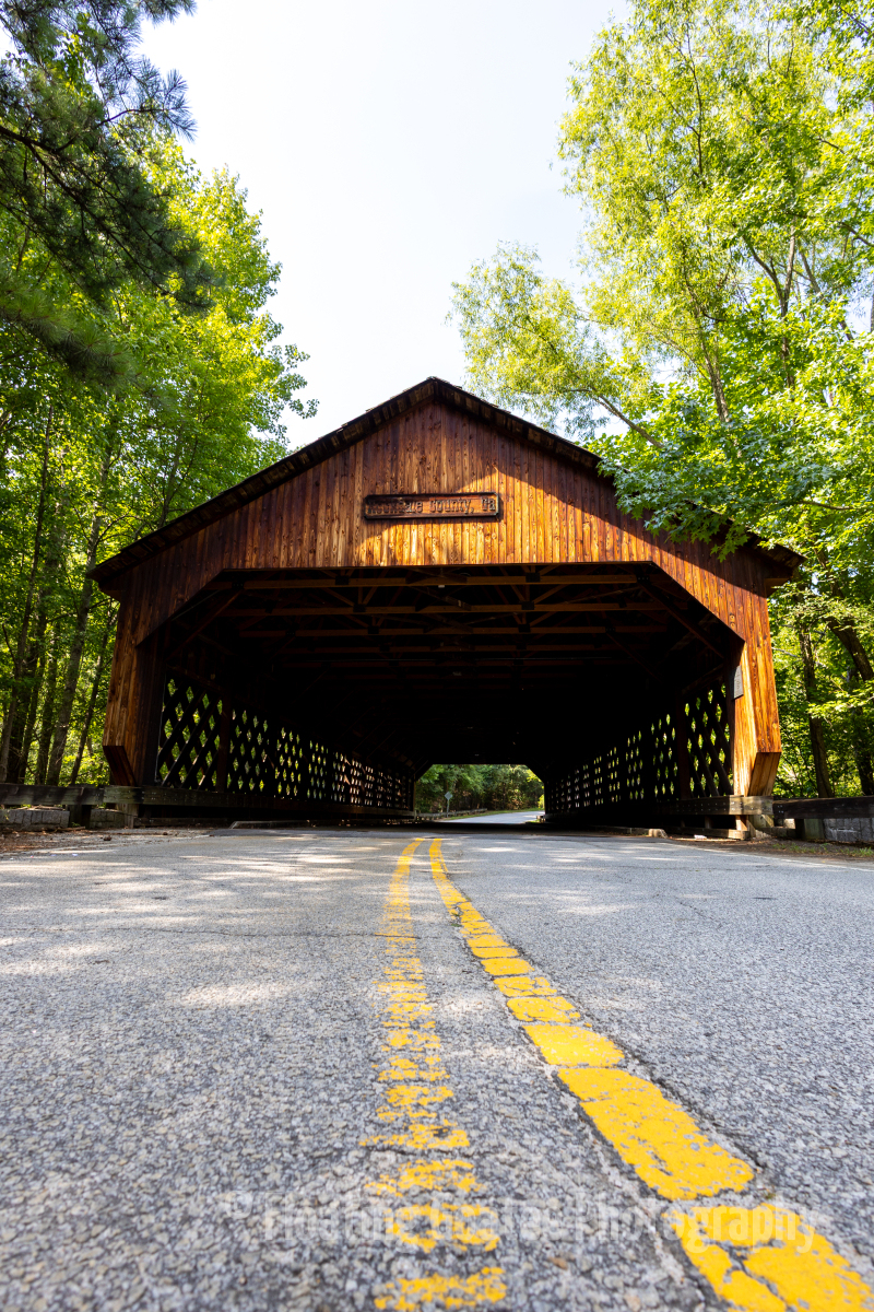 A somewhat secluded stretch of road in Rockdale County, GA features a covered bridge. A lake sits adjacent to the road, of which the bridge crosses a narrow section. Spiders and insects take up residence in the shadowy, wooden structure. If you are quiet and patient, racoons, deer, and other animals may stroll around the area. There is a simple elegance to a classic structure that makes the trip special.