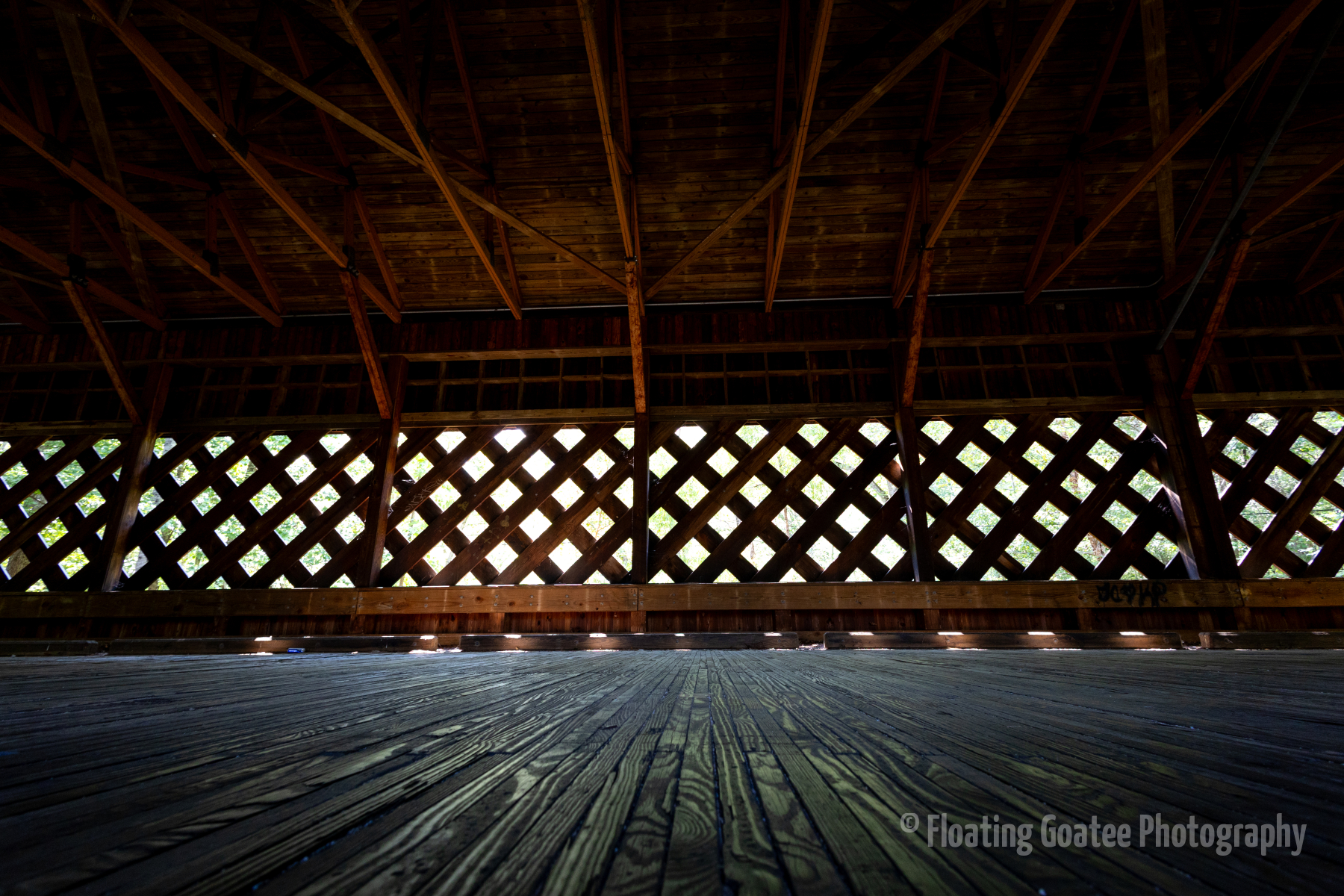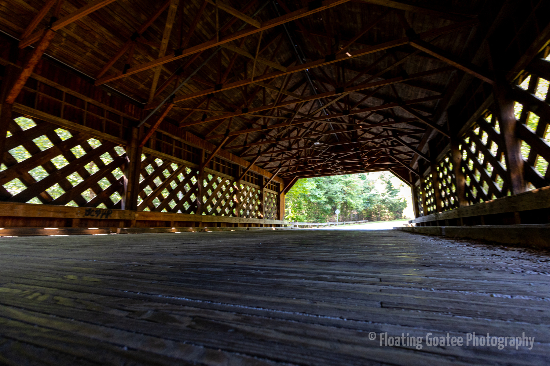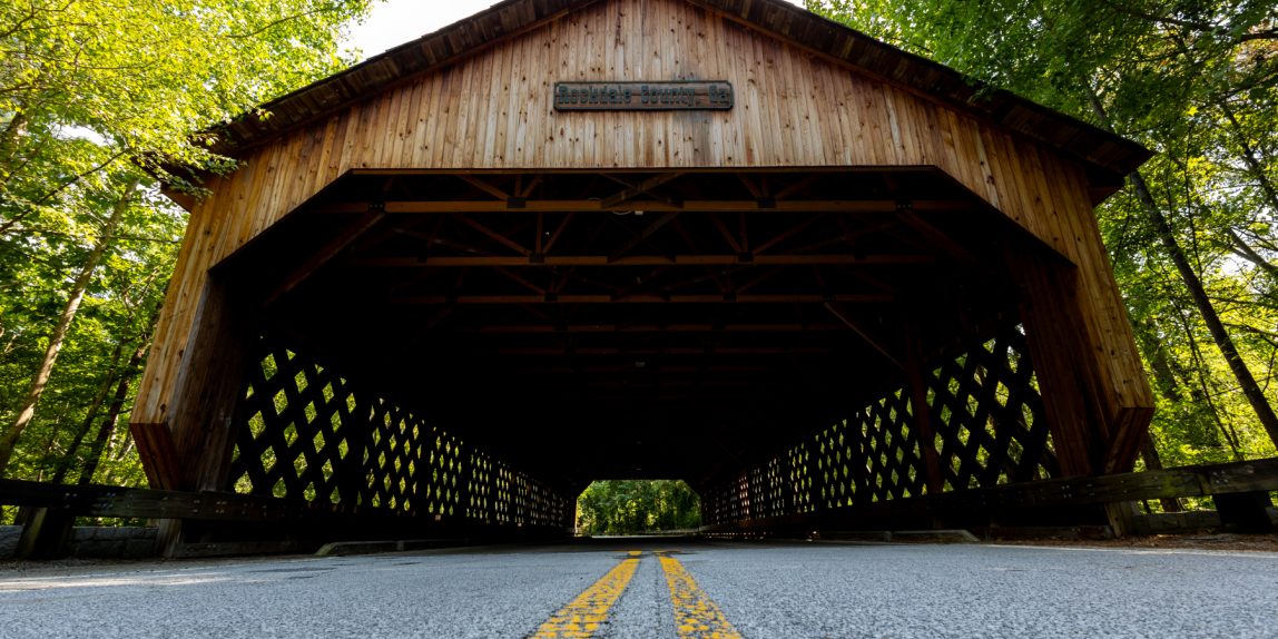 A somewhat secluded stretch of road in Rockdale County, GA features a covered bridge. A lake sits adjacent to the road, of which the bridge crosses a narrow section. Spiders and insects take up residence in the shadowy, wooden structure. If you are quiet and patient, racoons, deer, and other animals may stroll around the area. There is a simple elegance to a classic structure that makes the trip special.