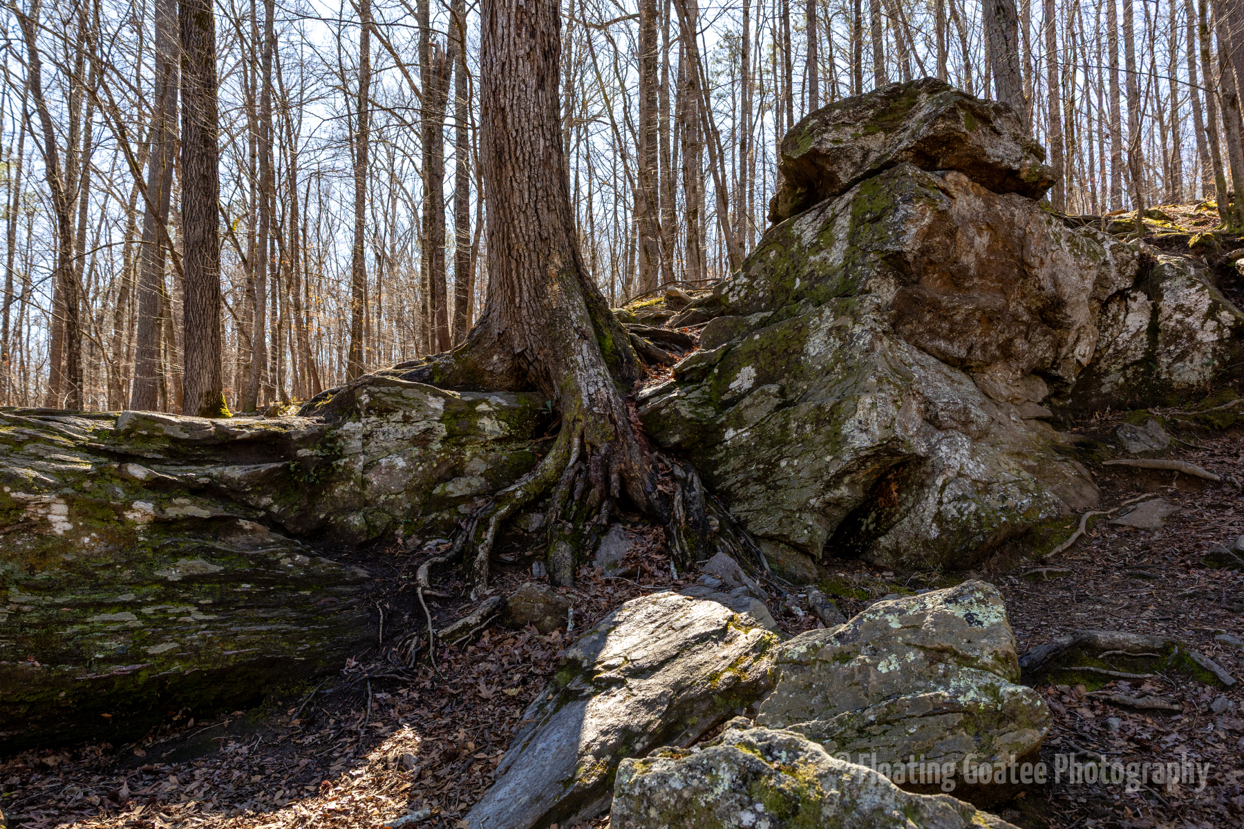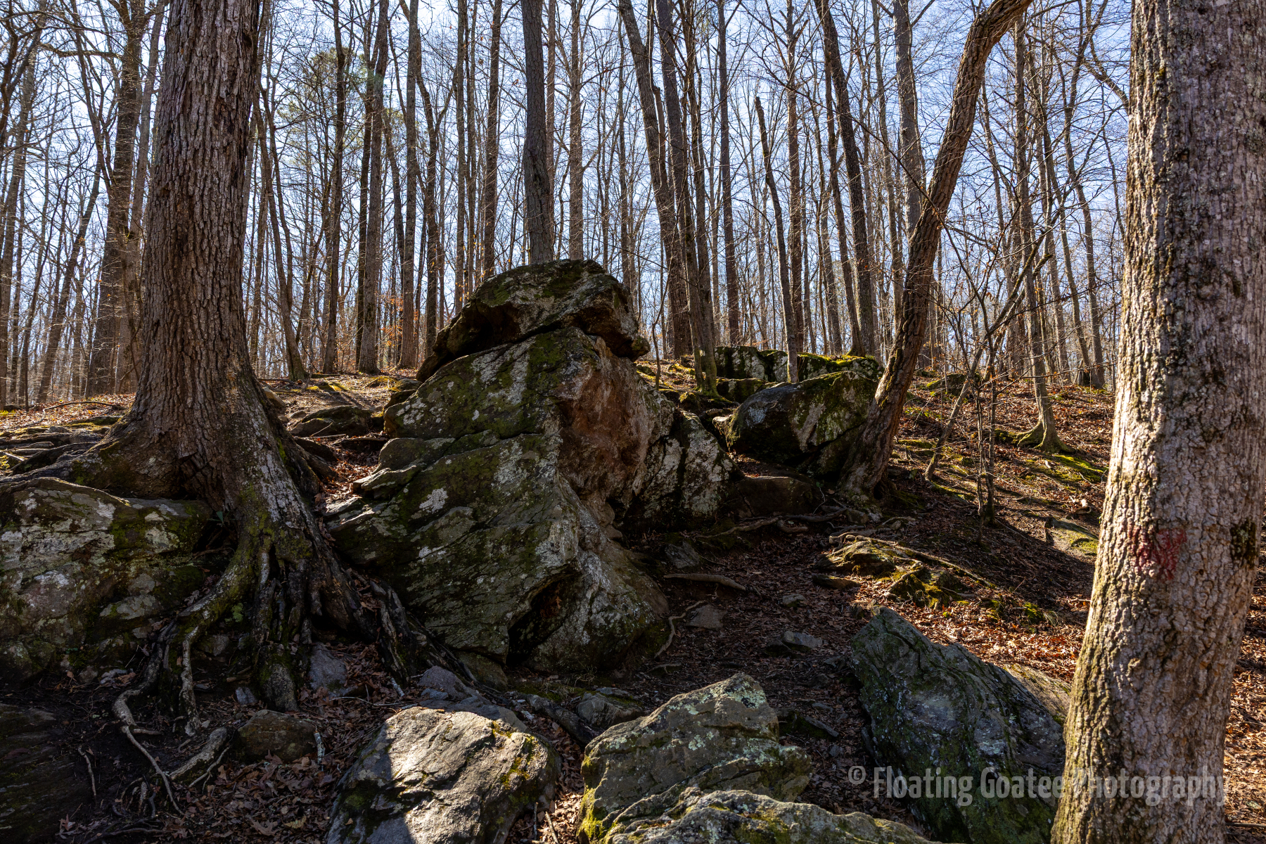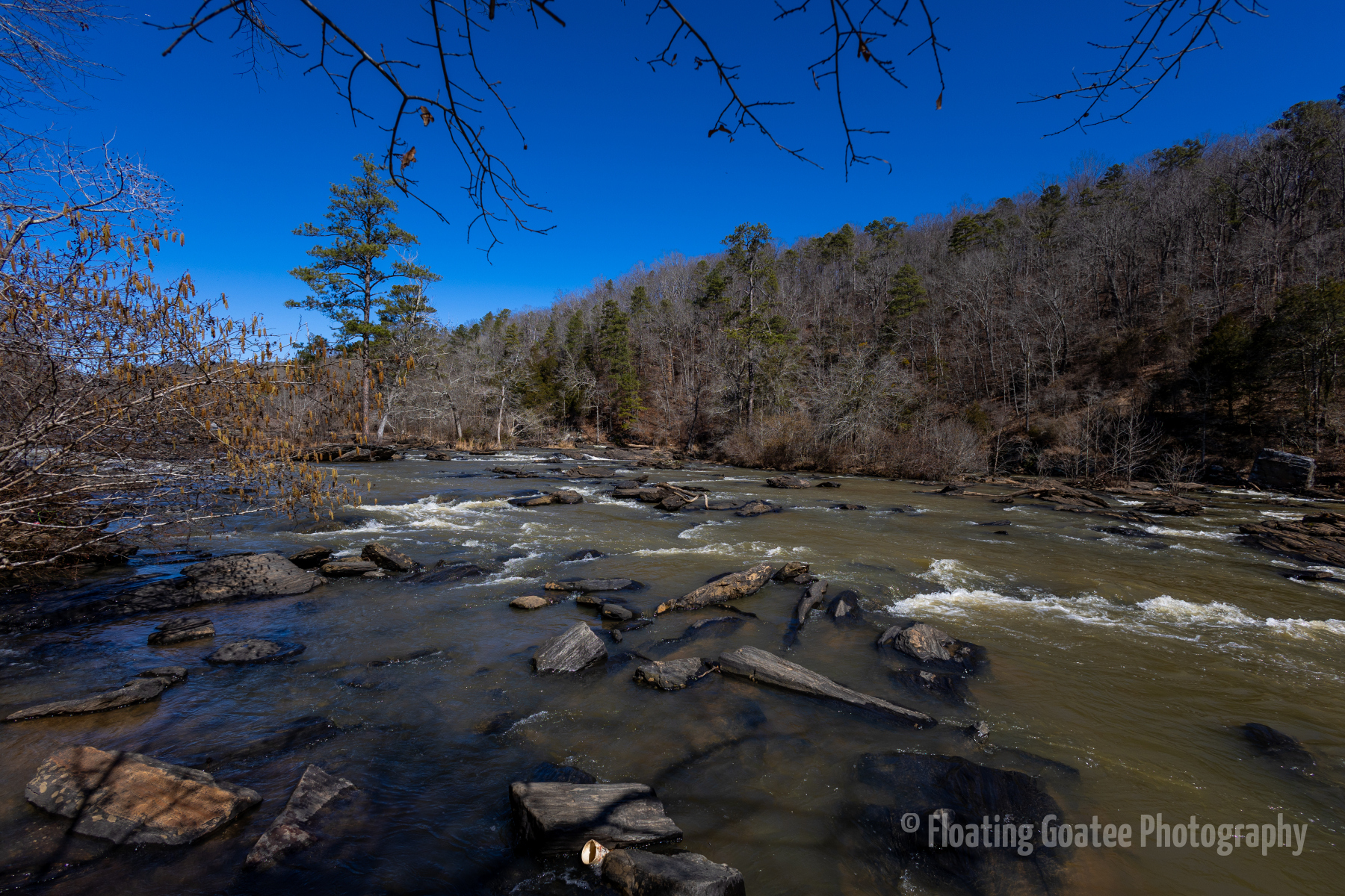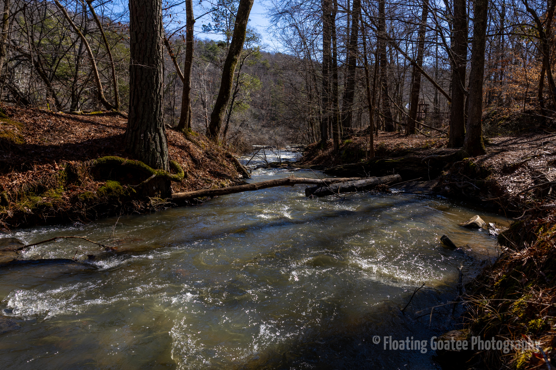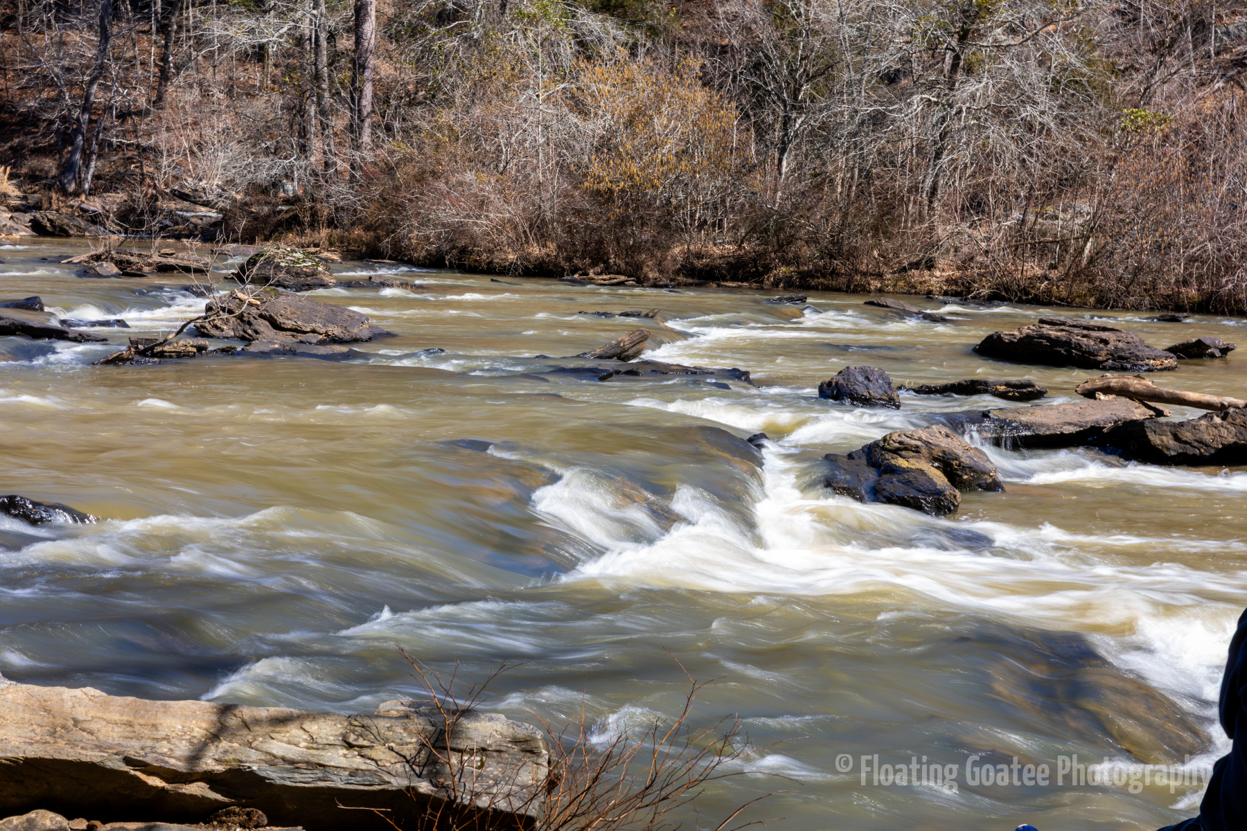 The historic property burned to the ground during the Civil War outside Atlanta. Ruins attract visitors, movies, and television. A rough set of trails and a creek with mild rapids. A pedestrian bridge that spans a wide section of the creek. Some come for the ruins, but the bridge is what captured my attention.