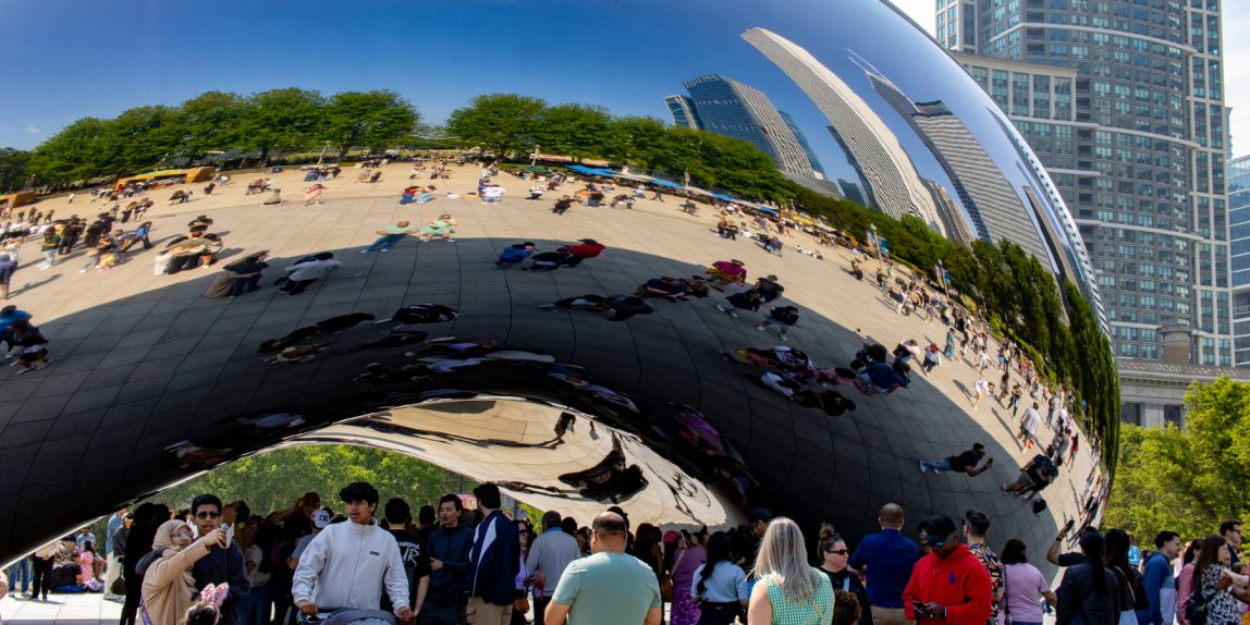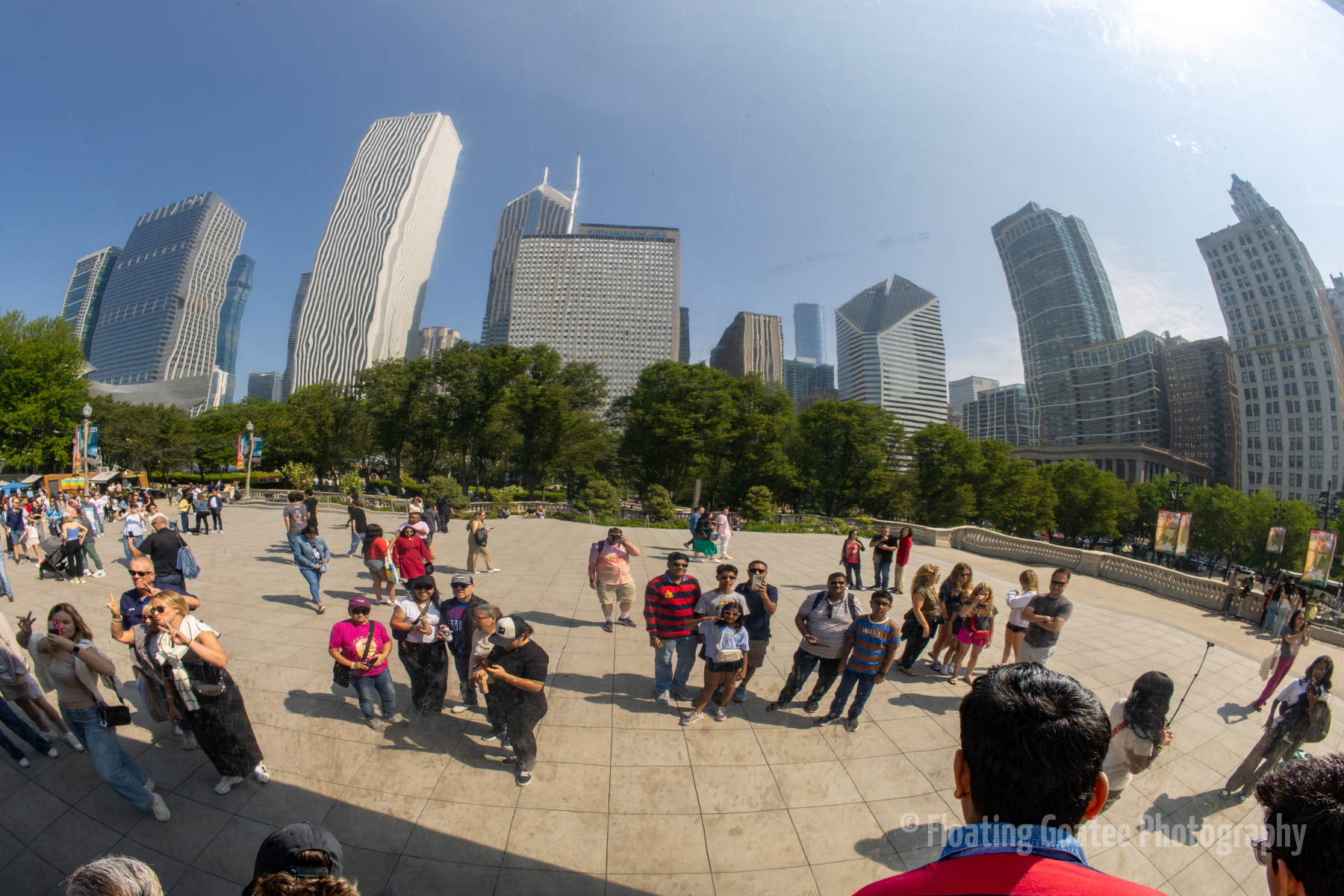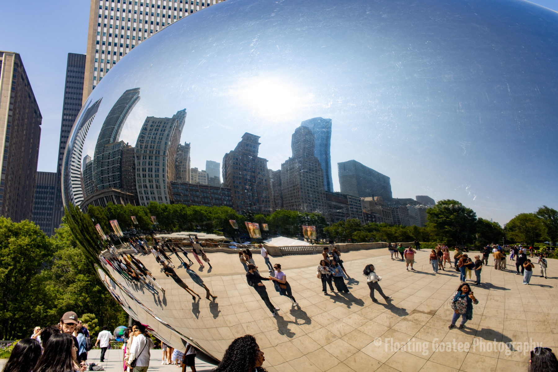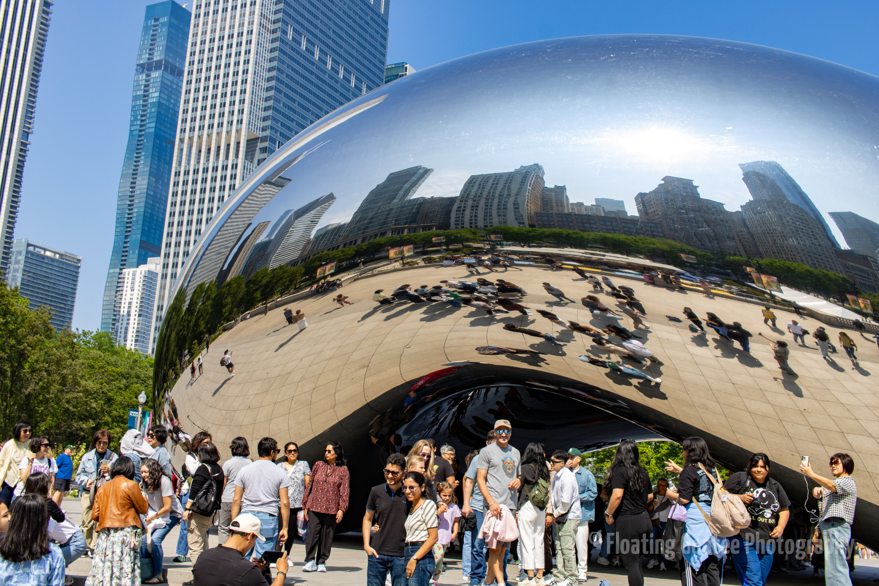 Millennium Park in Chicago houses the Cloud Gate sculpture. People tend to call it “The Bean”. Spero, our architectural boat tour guide, highly encouraged everyone to call it The Bean since it gets under the artists skin. There was a jazz festival on the day of our visit, so it was incredibly busy. Thousands of souls reflected in the chrome surface.