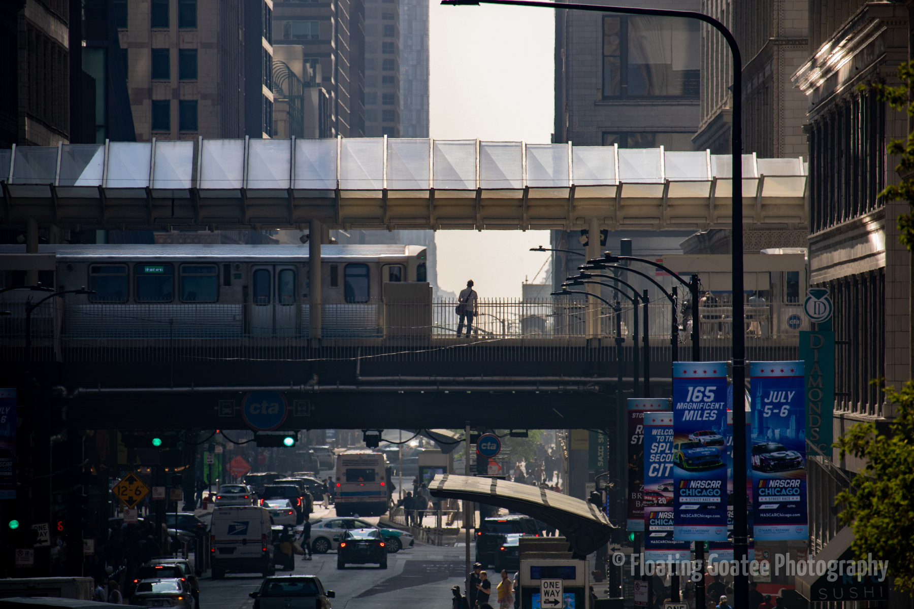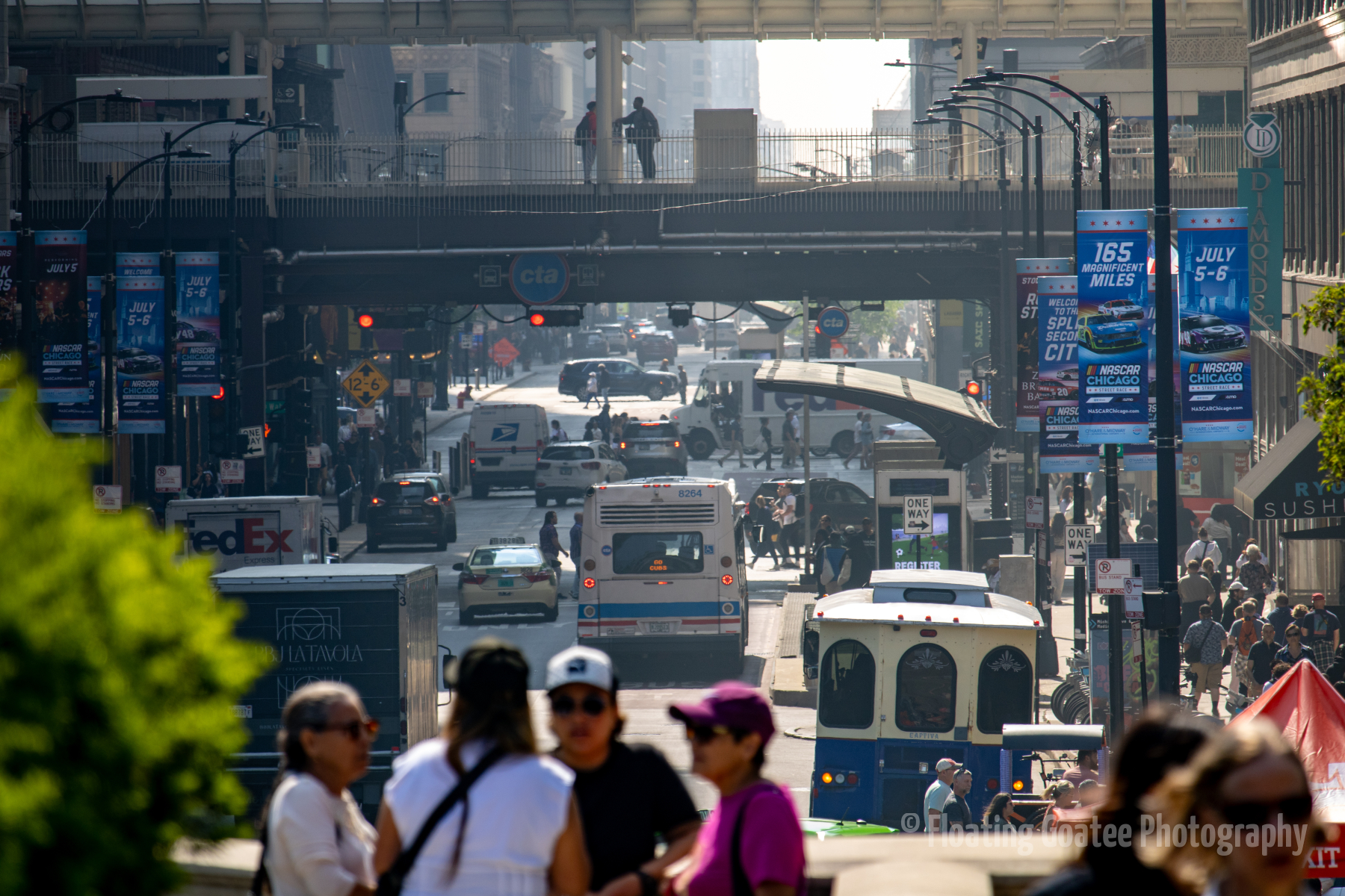 The streets of Chicago are congested. People are moving by train, by car, by boat, and on foot. There are sights and sounds to be found. You can look up, down, and all around. It is helpful when you have the moderate temperatures of late spring and early summer. Lake Michigan adds humidity to the winds of the Windy City. Take a trip and see what you can find.
