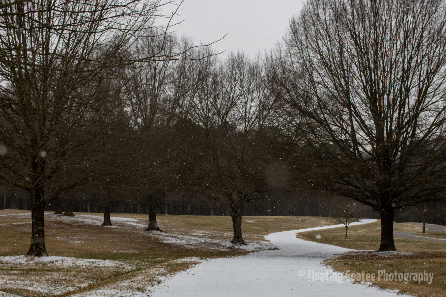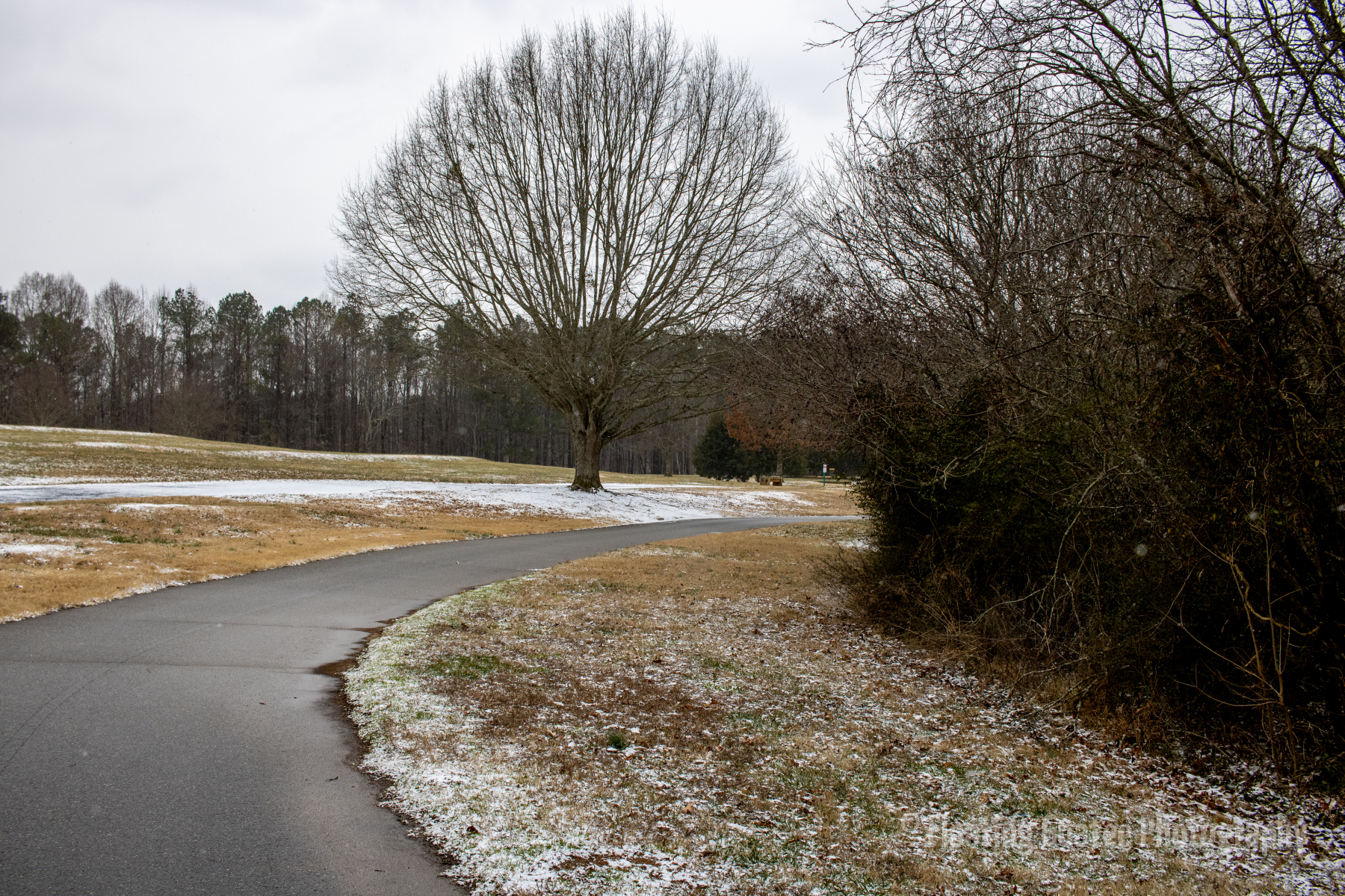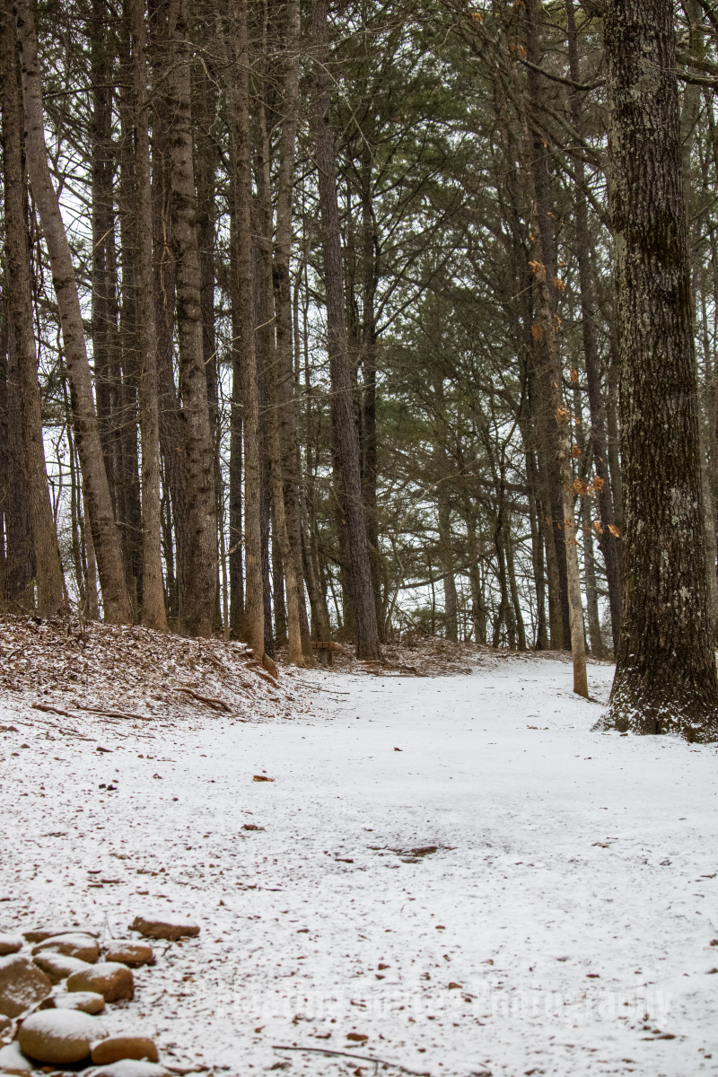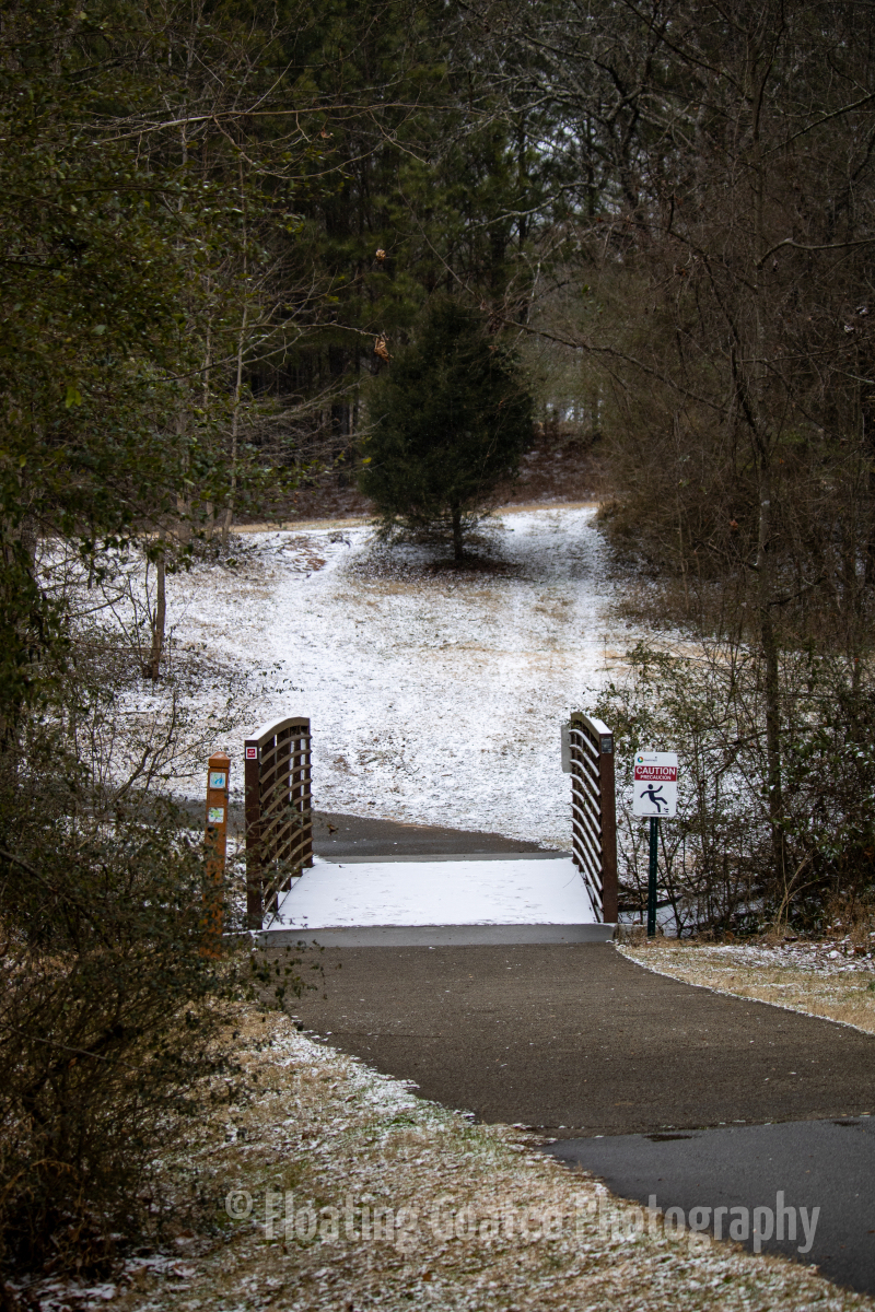 Inconsistent snowfall across the Atlanta metro and North Georgia. Alexander Park gets a dusting of powdery white snow during the early morning on Saturday. Birds are out, fluffed up, stunned, and looking for food and warmth. Certain walkways and covered areas allow the snow to stick. It is a cold yet magical time wandering the paths and through the woods observing weather and nature.