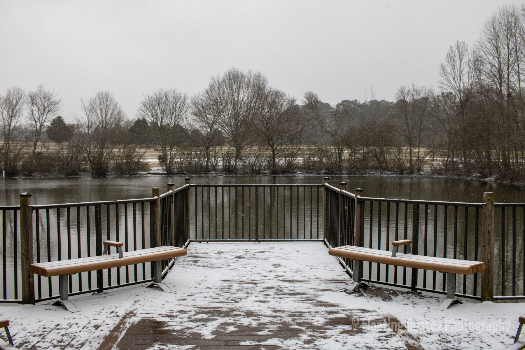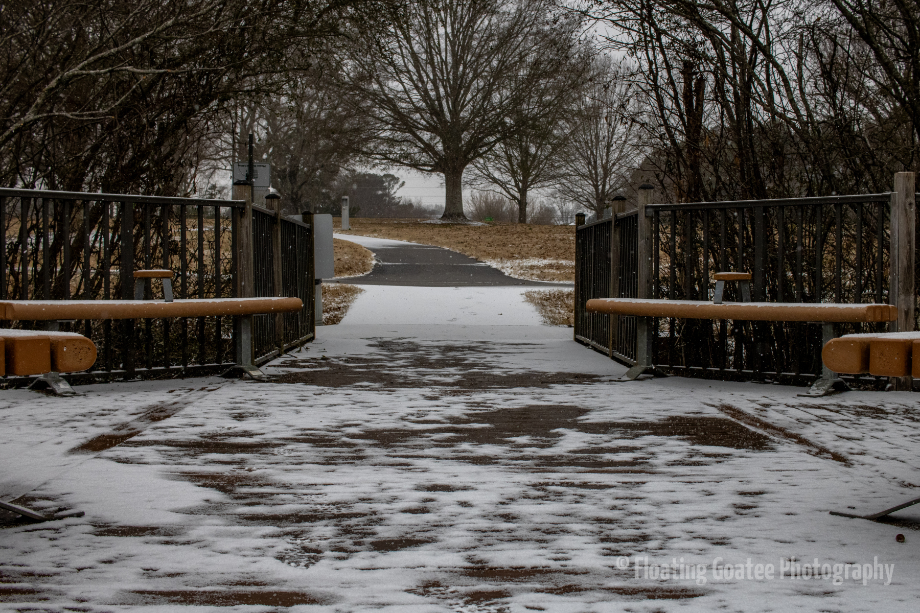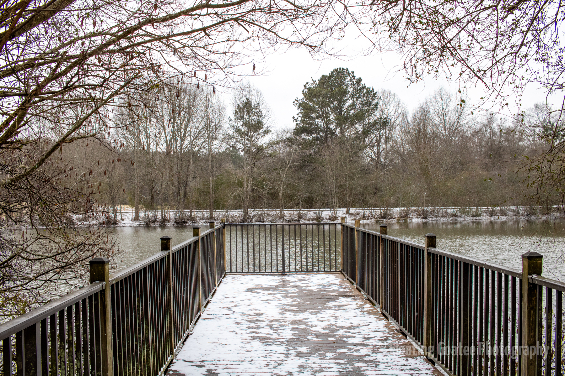 Inconsistent snowfall across the Atlanta metro and North Georgia. Alexander Park gets a dusting of powdery white snow during the early morning on Saturday. Birds are out, fluffed up, stunned, and looking for food and warmth. Certain walkways and covered areas allow the snow to stick. It is a cold yet magical time wandering the paths and through the woods observing weather and nature.
