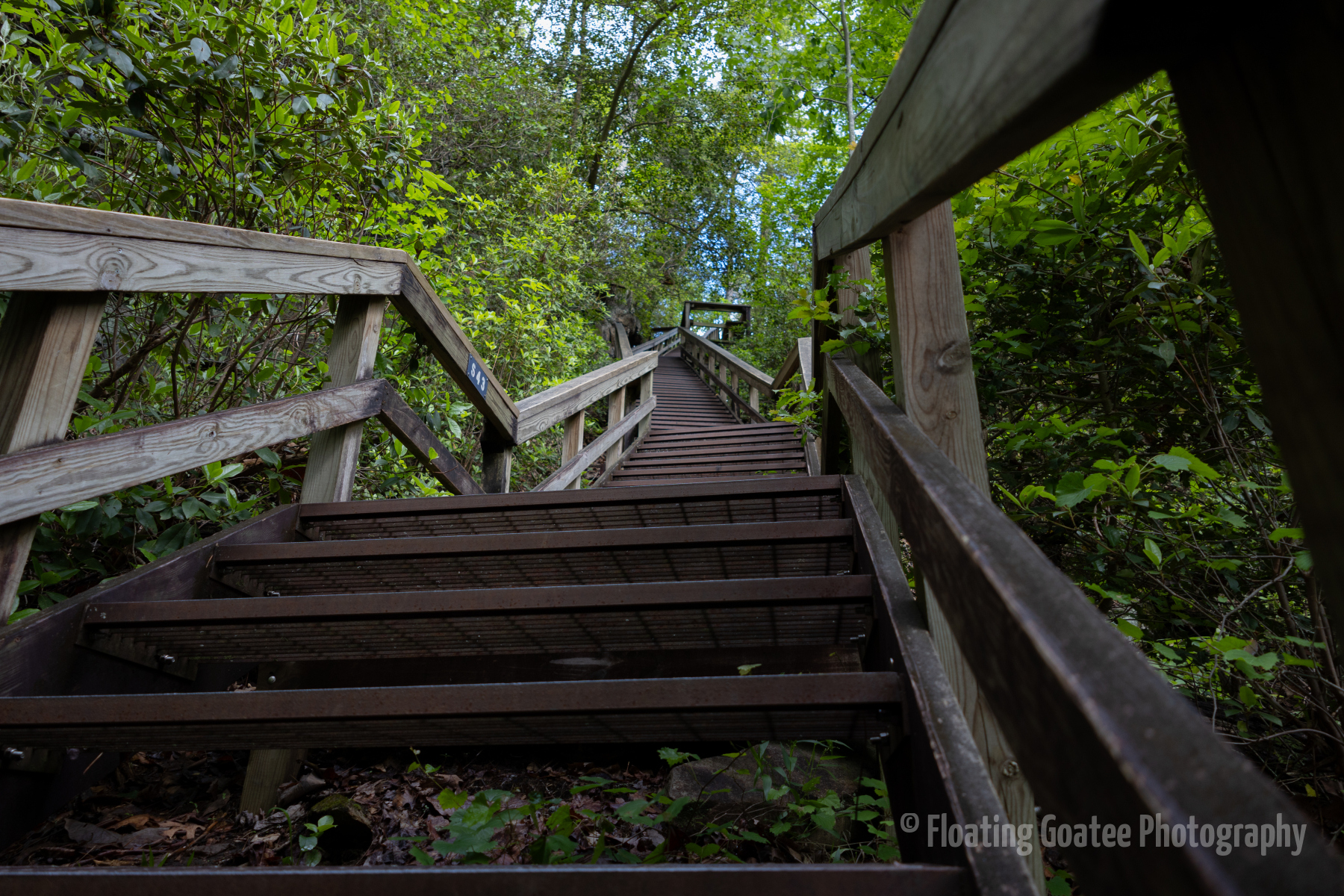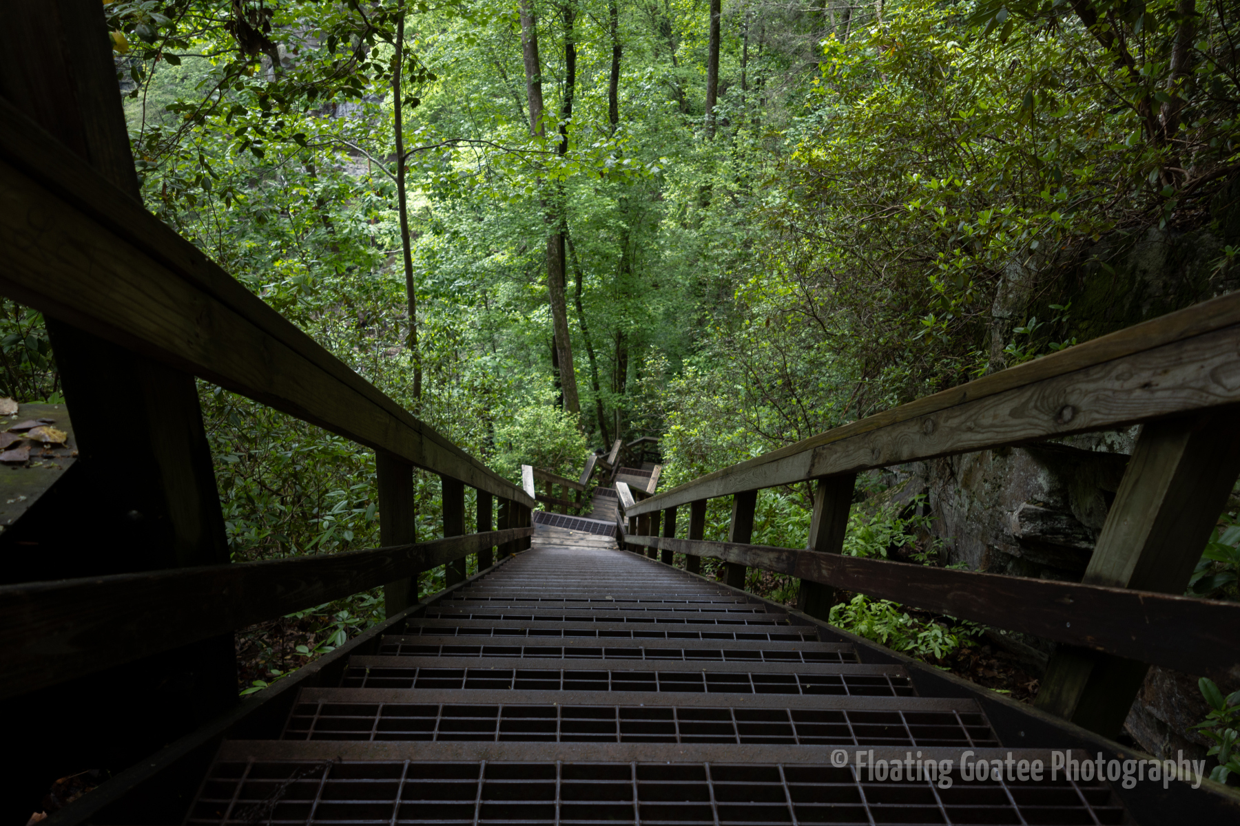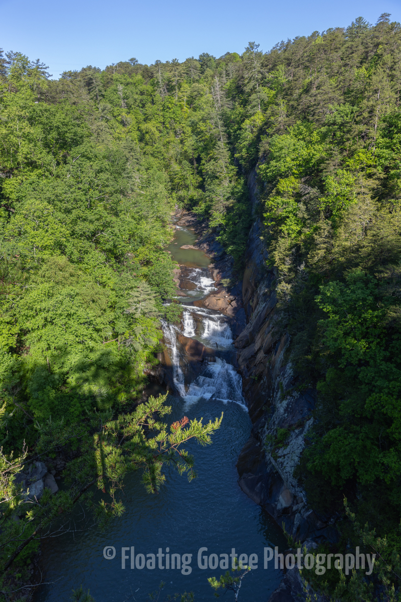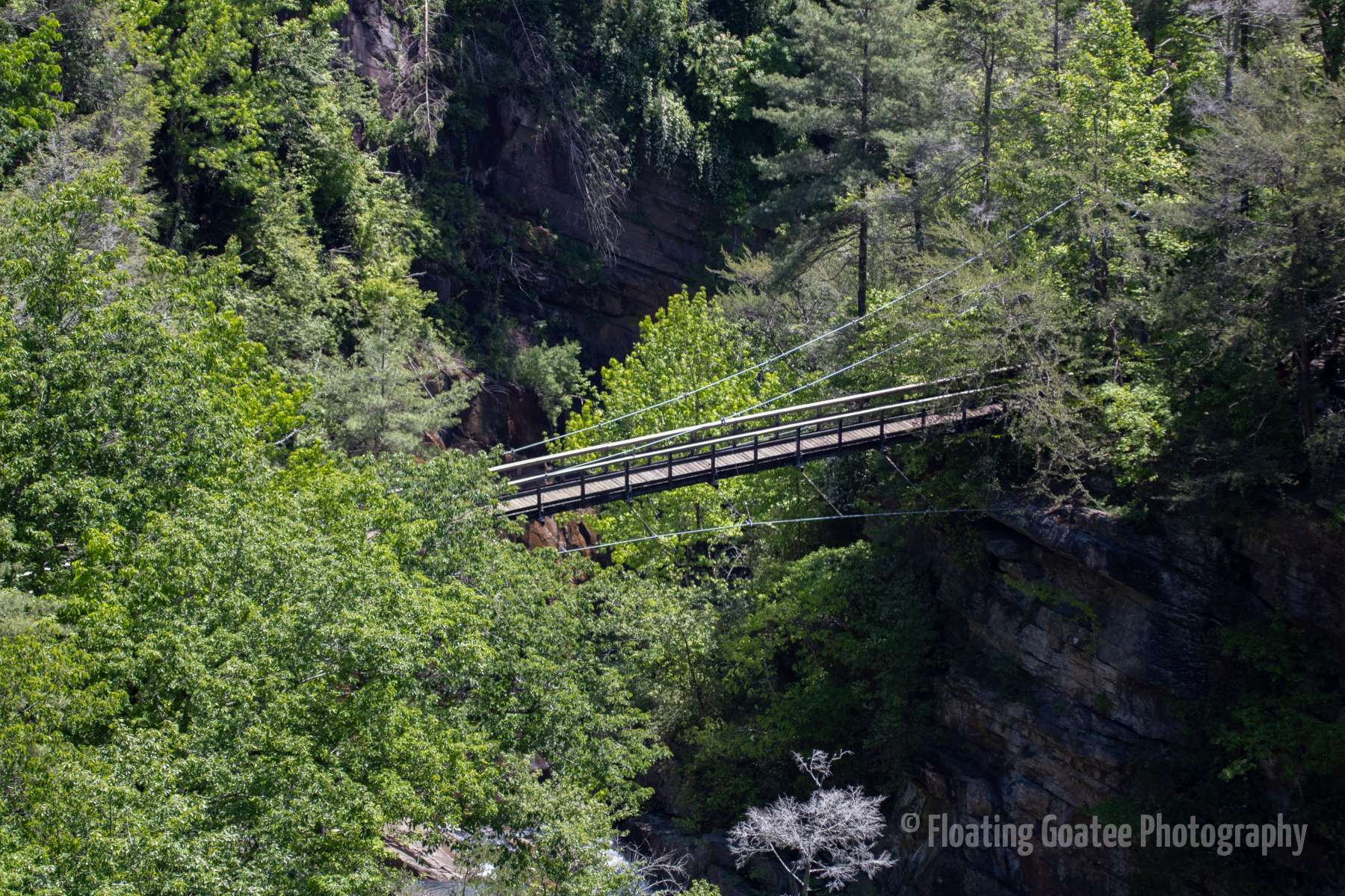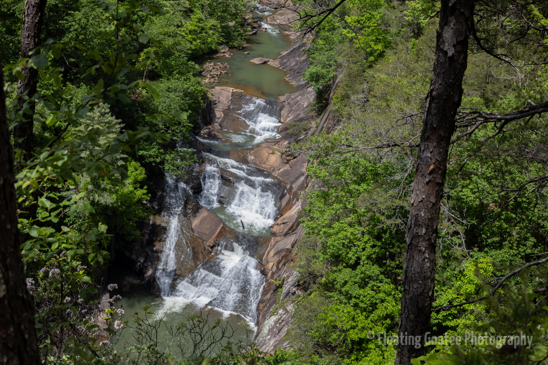 Tallulah Gorge State Park is in North Georgia. A dam feeds into a gorge with various waterfalls. There are steps from the top that will take you down to the bottom. There is also a swinging bridge that traverses the canyon halfway down. There is ample opportunity to hike and get a good workout while seeing the river and waterfalls from various overlooks and angles. It is a wonderful place to go spend a day adventuring.