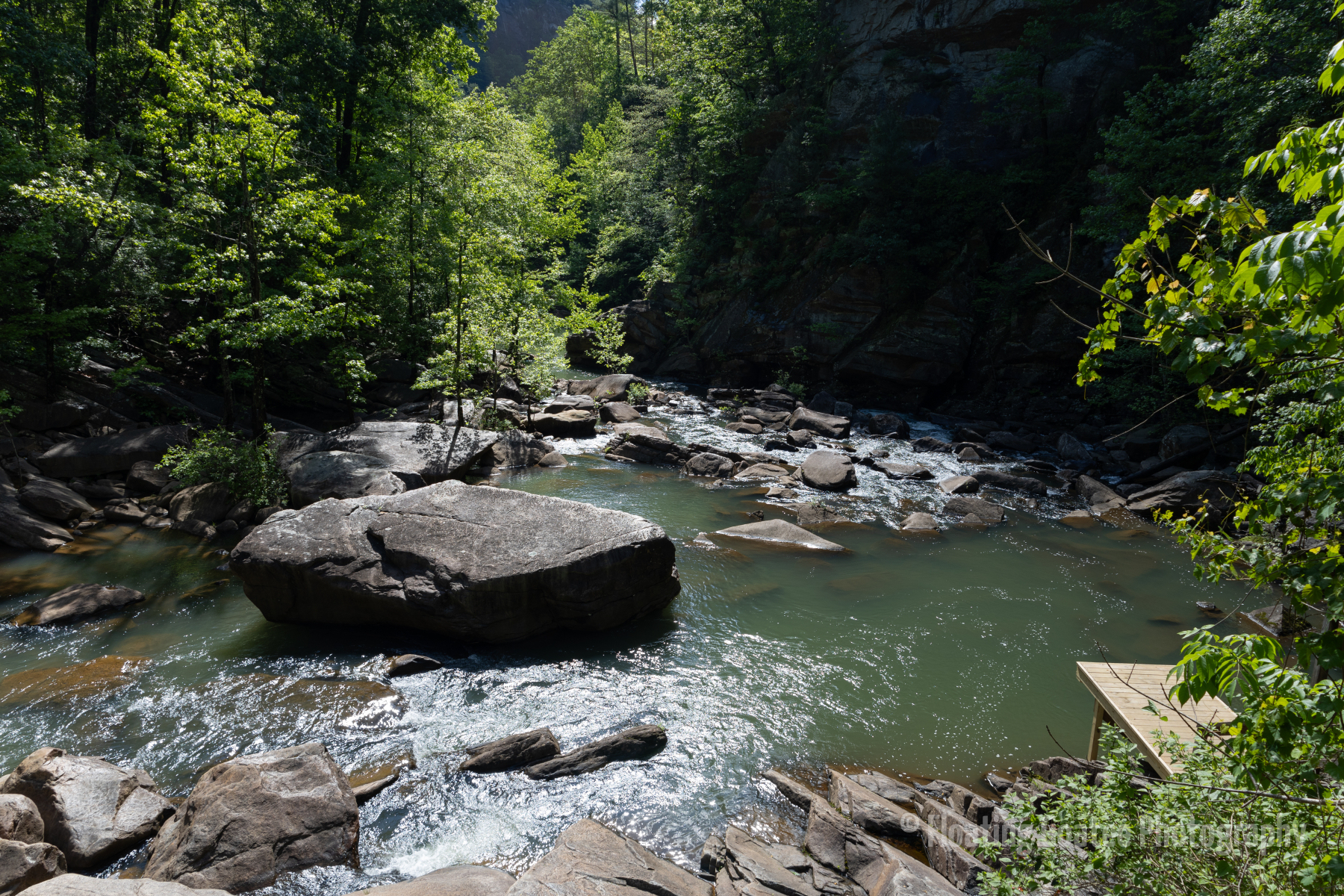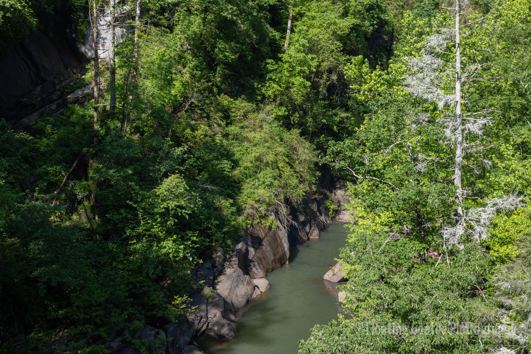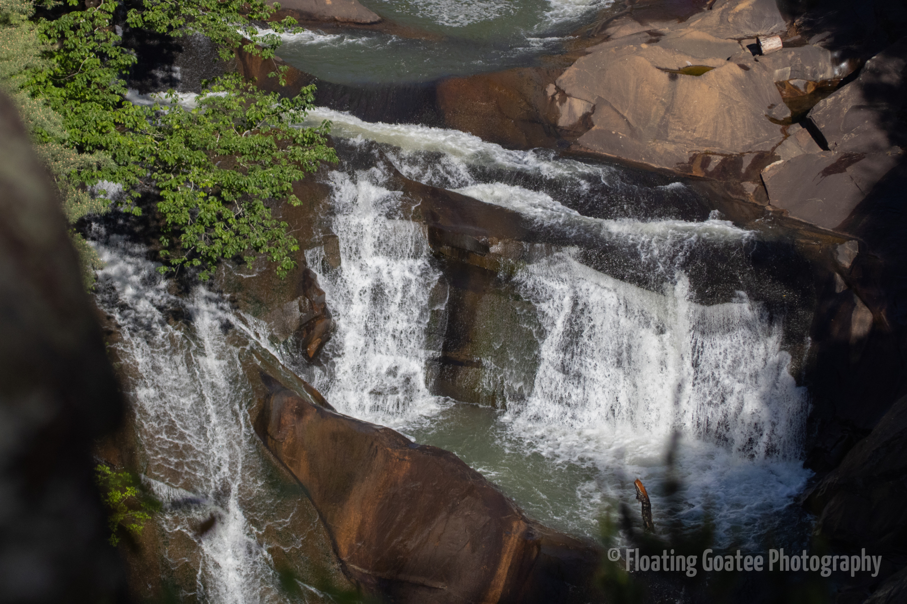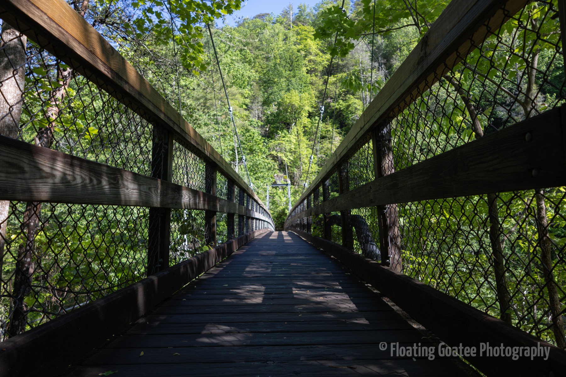 Tallulah Gorge State Park is in North Georgia. A dam feeds into a gorge with various waterfalls. There are steps from the top that will take you down to the bottom. There is also a swinging bridge that traverses the canyon halfway down. There is ample opportunity to hike and get a good workout while seeing the river and waterfalls from various overlooks and angles. It is a wonderful place to go spend a day adventuring.