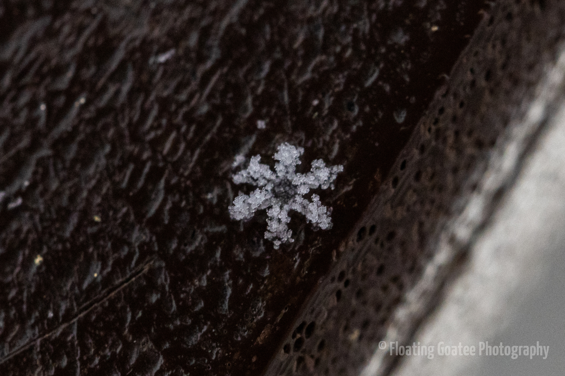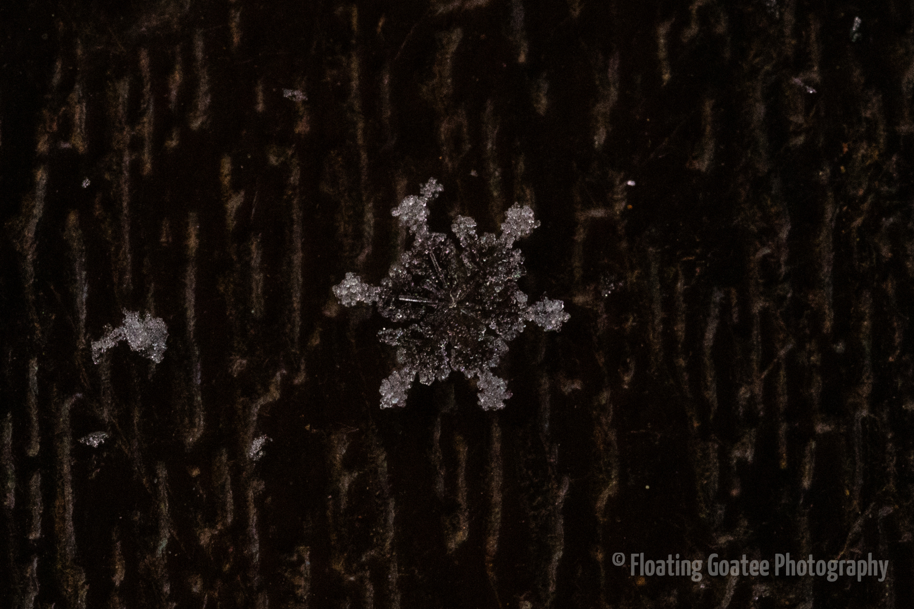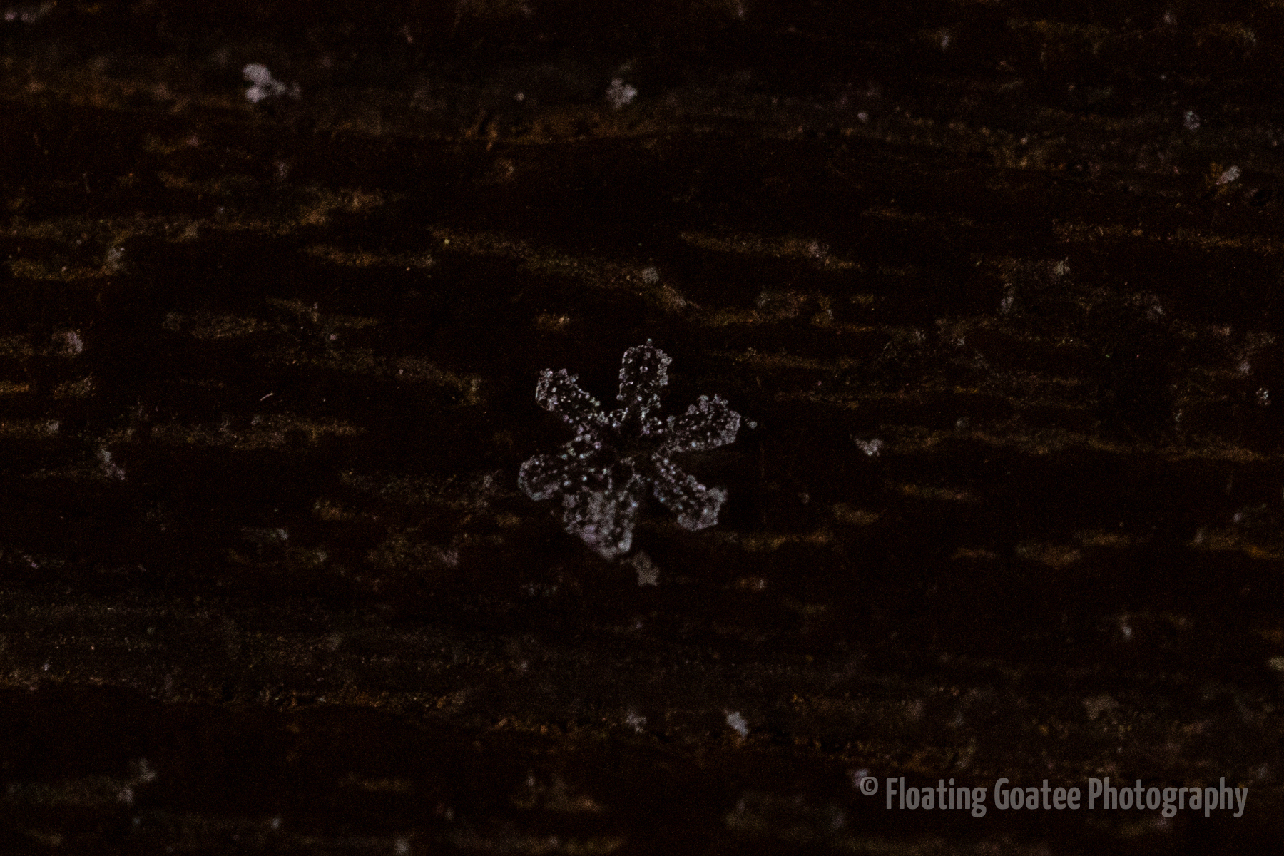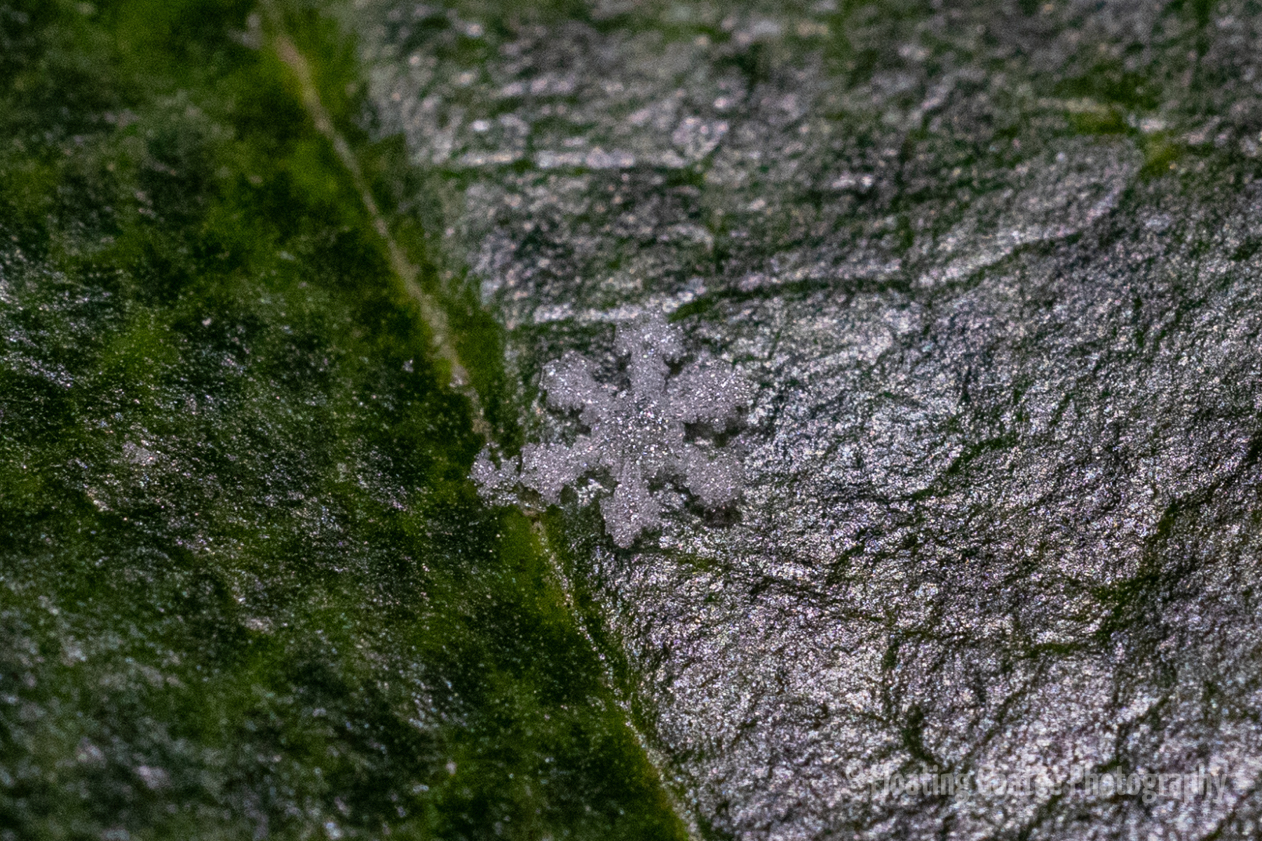 During a rare snow event in the Atlanta metro, I wander outside early in the morning. Armed with my macro lens, I attempt to capture isolated snowflakes up close. I succeed and discover how unique each flake appears. It truly is a rare opportunity, as you never know year to year whether you will see the crystalized water fall to the ground.