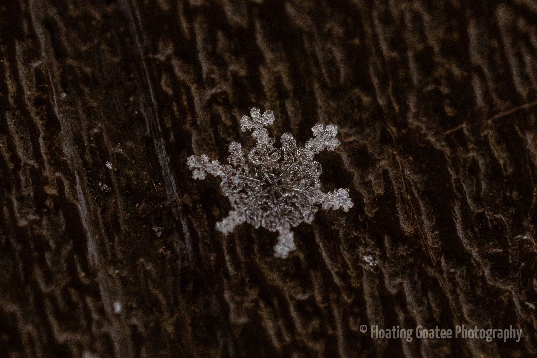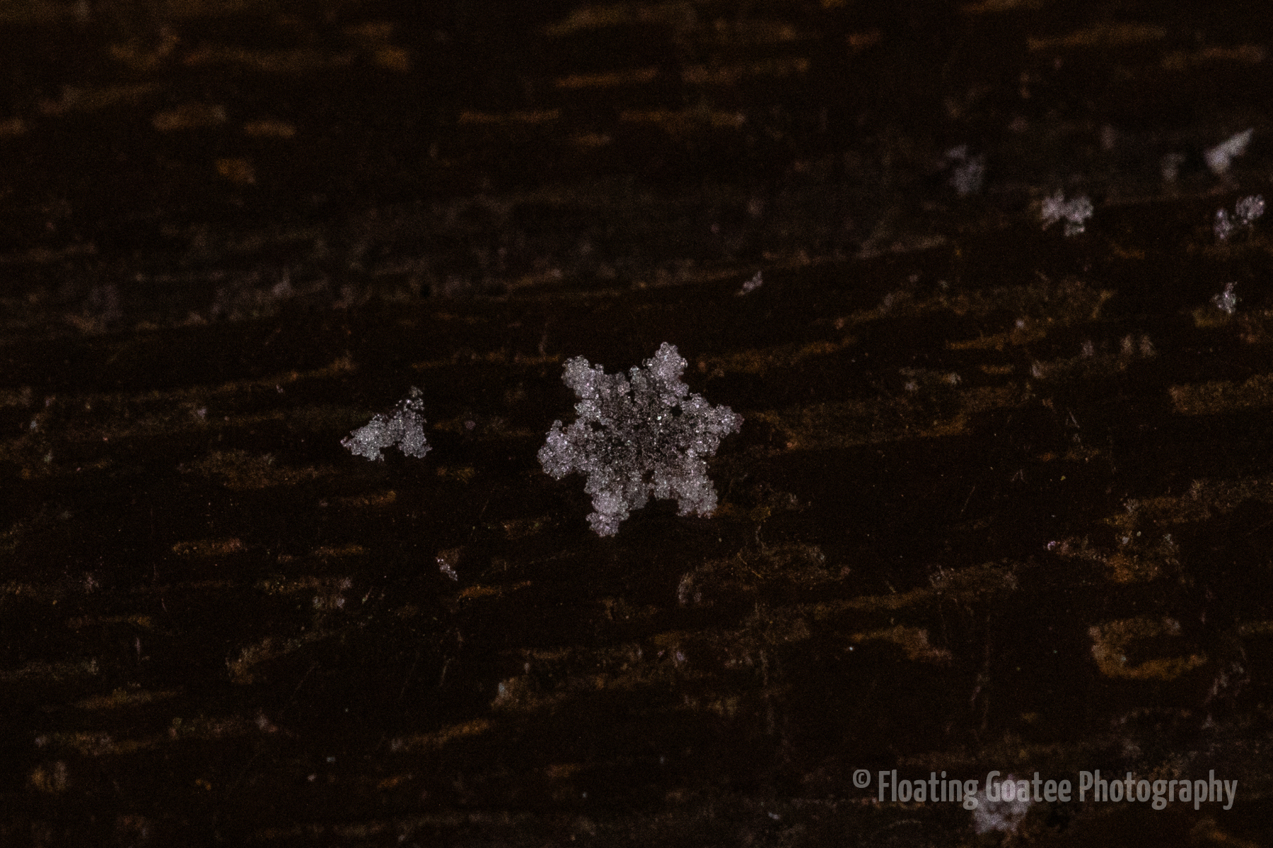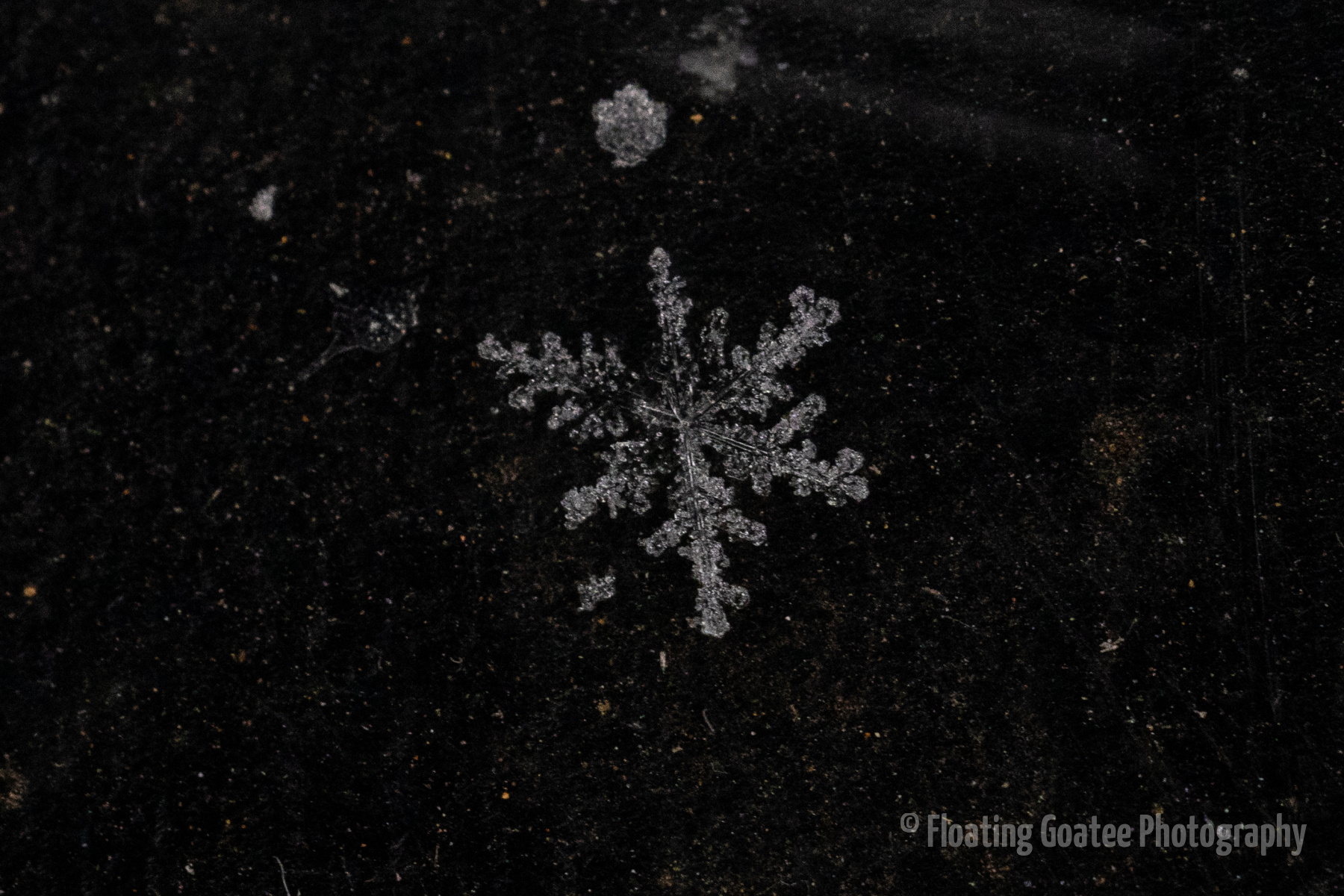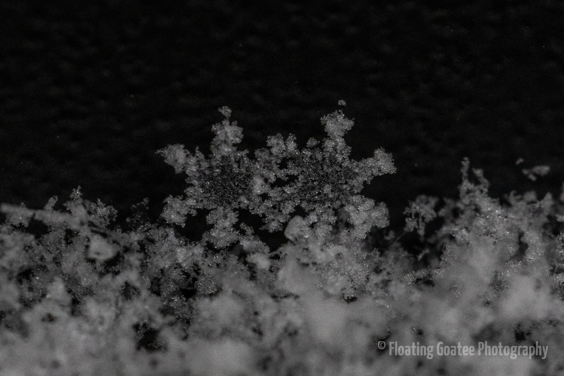 During a rare snow event in the Atlanta metro, I wander outside early in the morning. Armed with my macro lens, I attempt to capture isolated snowflakes up close. I succeed and discover how unique each flake appears. It truly is a rare opportunity, as you never know year to year whether you will see the crystalized water fall to the ground.