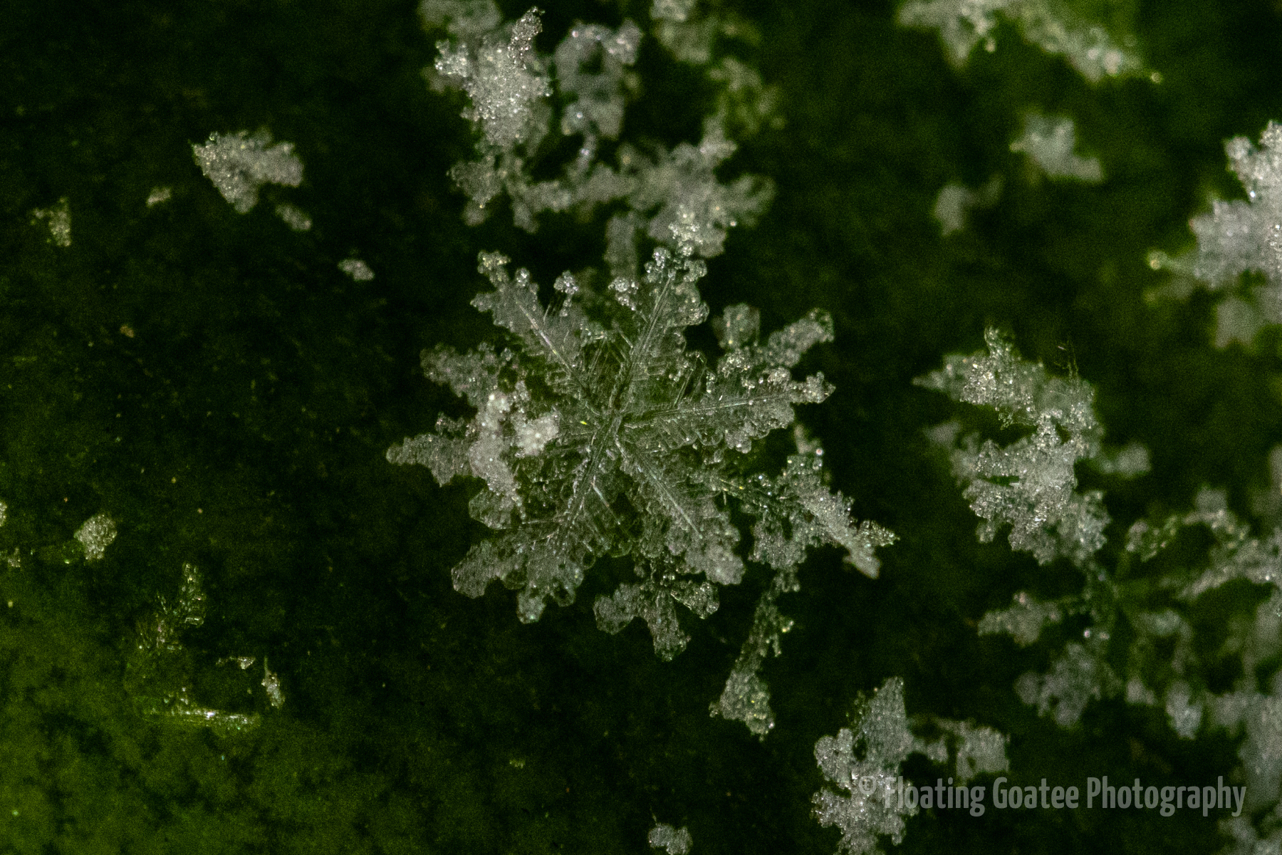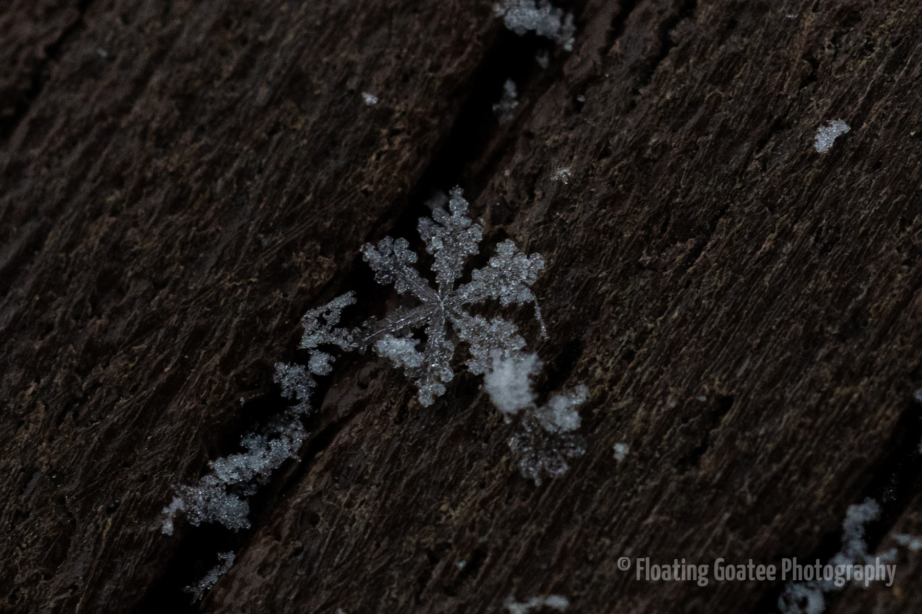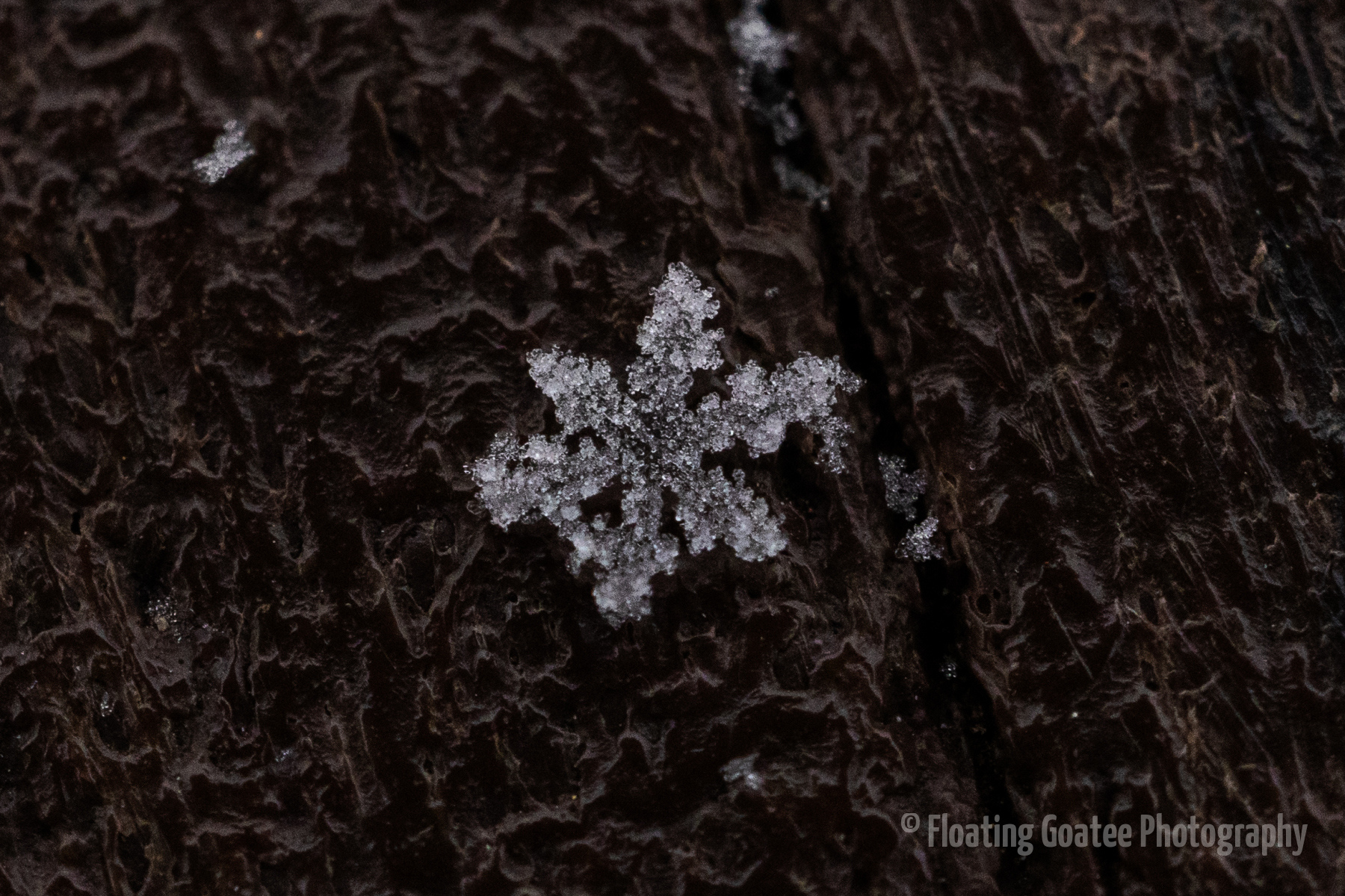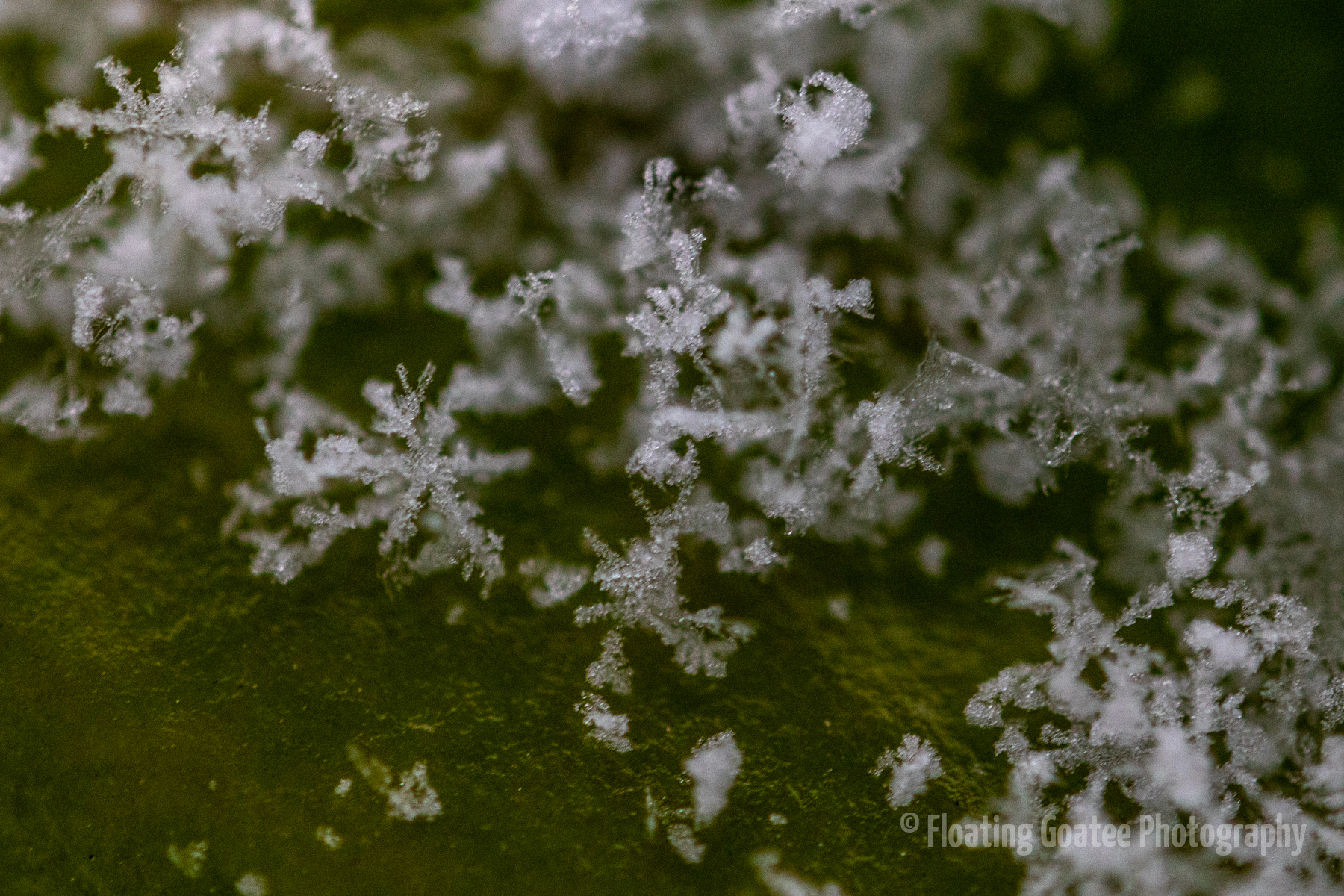 During a rare snow event in the Atlanta metro, I wander outside early in the morning. Armed with my macro lens, I attempt to capture isolated snowflakes up close. I succeed and discover how unique each flake appears. It truly is a rare opportunity, as you never know year to year whether you will see the crystalized water fall to the ground.