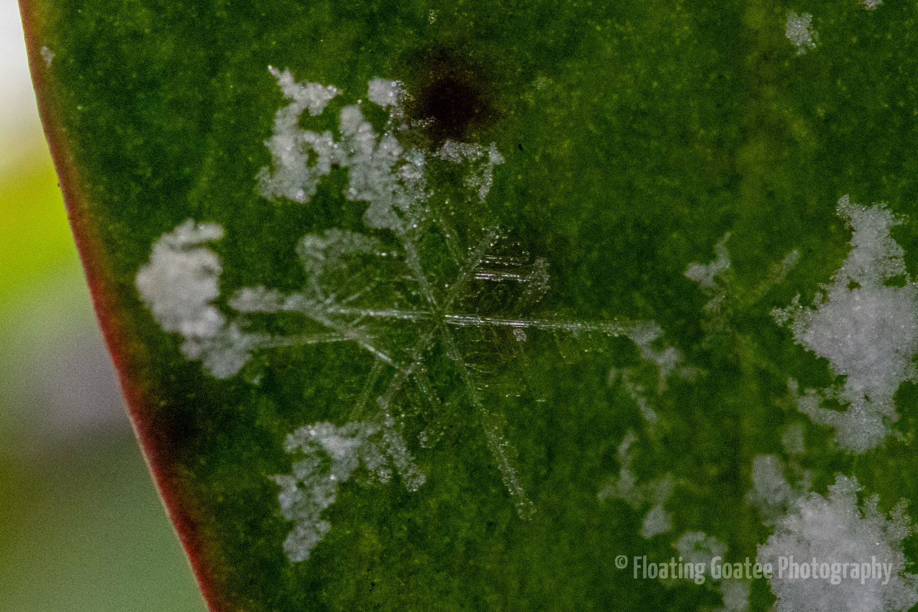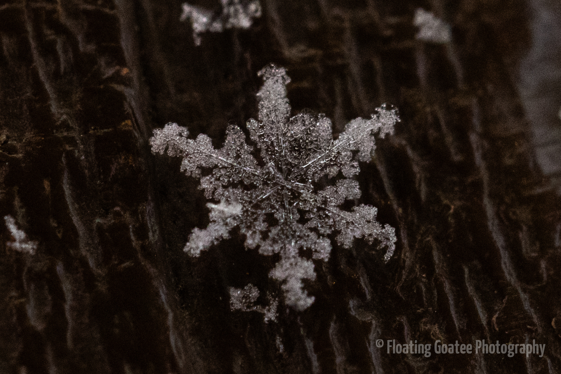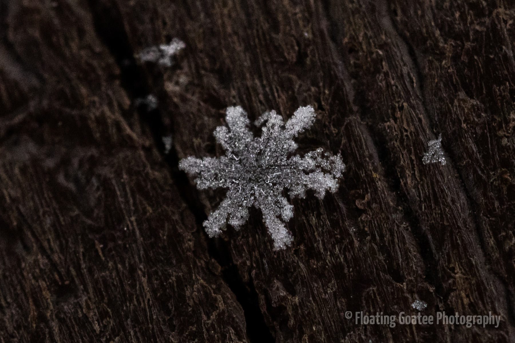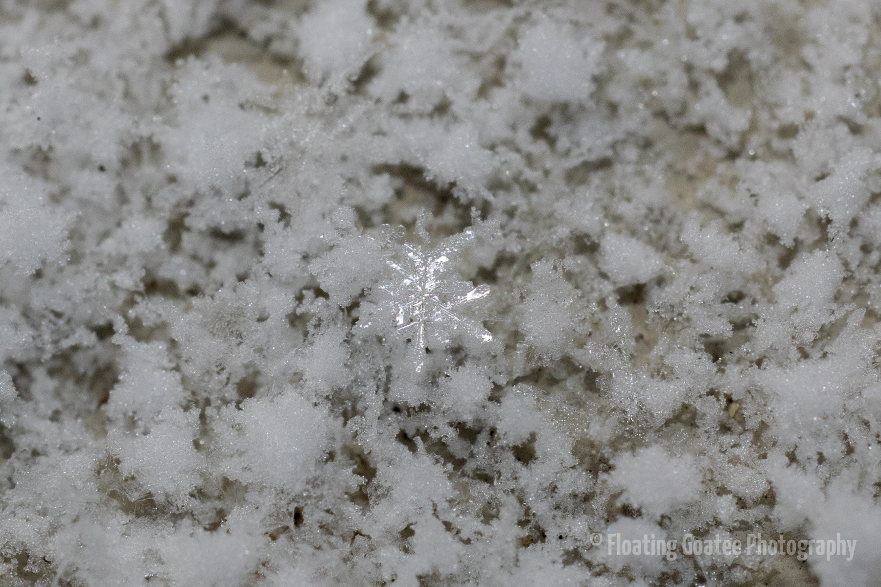 During a rare snow event in the Atlanta metro, I wander outside early in the morning. Armed with my macro lens, I attempt to capture isolated snowflakes up close. I succeed and discover how unique each flake appears. It truly is a rare opportunity, as you never know year to year whether you will see the crystalized water fall to the ground.