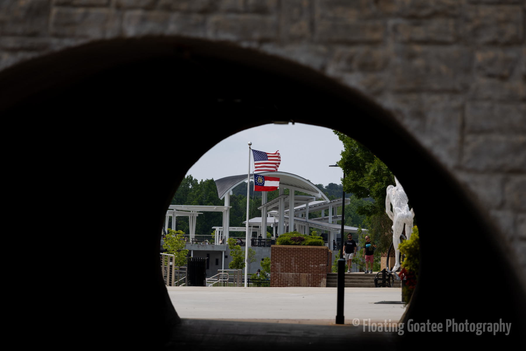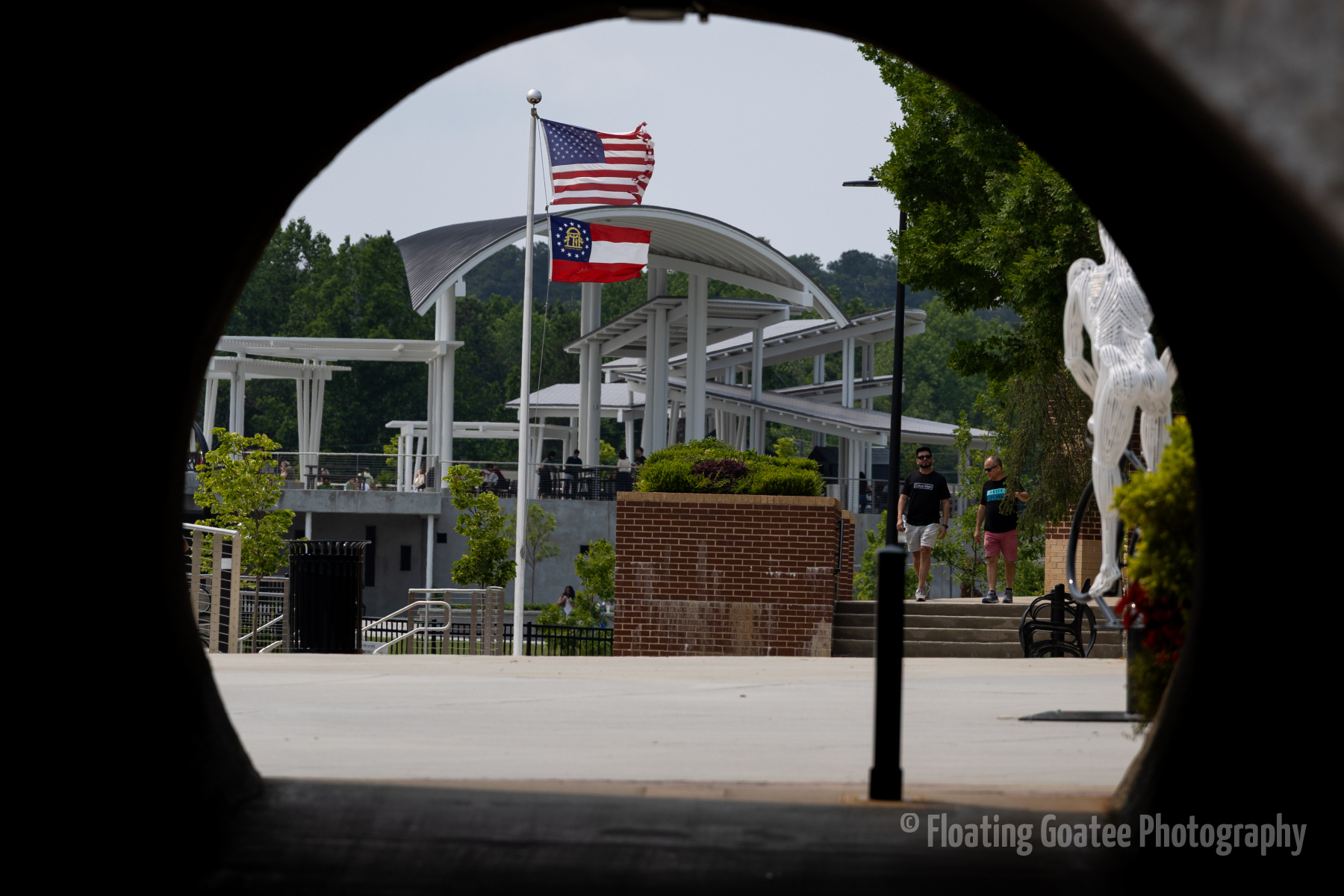 Downtown Suwanee, Georgia has been modernized. Crowds are attracted to public grounds with elevated walkways. The center of downtown, in front of city hall, is a gathering place for large events. I was exploring on a day when a Blues and BBQ community event was getting set up. The crowds were larger than I expected, but it set the stage for an interesting adventure.